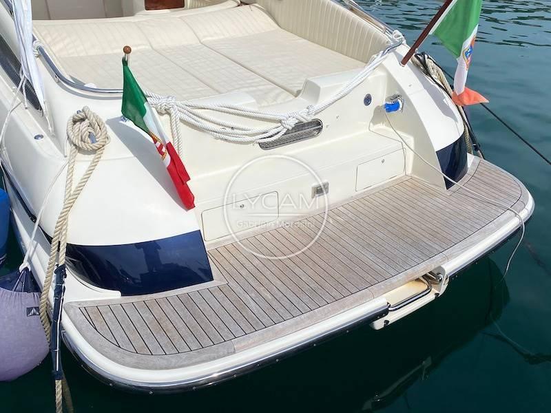 Luci di via; Luce di fonda; Luce pozzetto; Tromba; Flaps; Batterie; Parallelo batterie; Stacca batterie; Presa a terra 220V; Caricabatterie; Generatore mod. Mini 40 3.5 Kw; Parabordi; Pozzetto in teak; Mezzomarinaio; Asta bandiera in legno; Plancetta in teak; Doccetta pozzetto; Cappa copertura barca; Scaletta bagno; Aria condizionata; Capote cabriolet; Cuscinerie prendisole prodiero e poppiero; Verricello elettrico; Battagliola di prua; Ancora inox; Pompa sentina automatica; Tavolo pozzetto in teak.