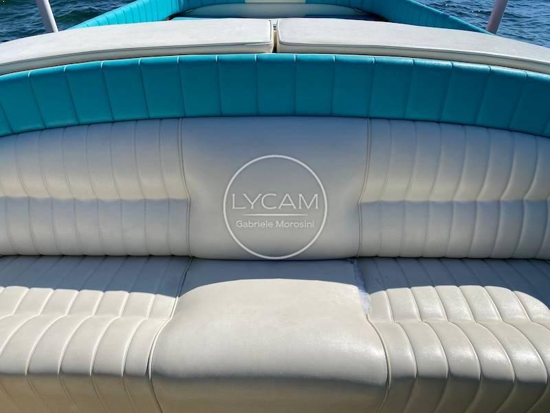 Pozzetto con doppia fila di sedili e posto guida stand up, prendisole poppiero, cabina a prua con 2 cuccette.