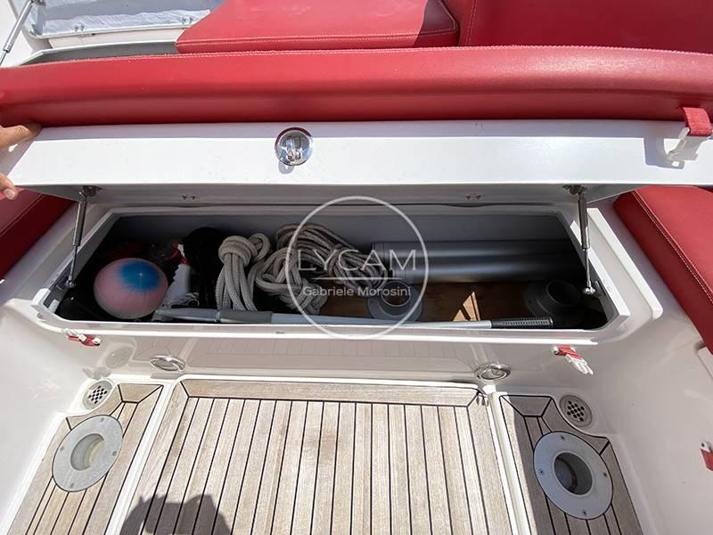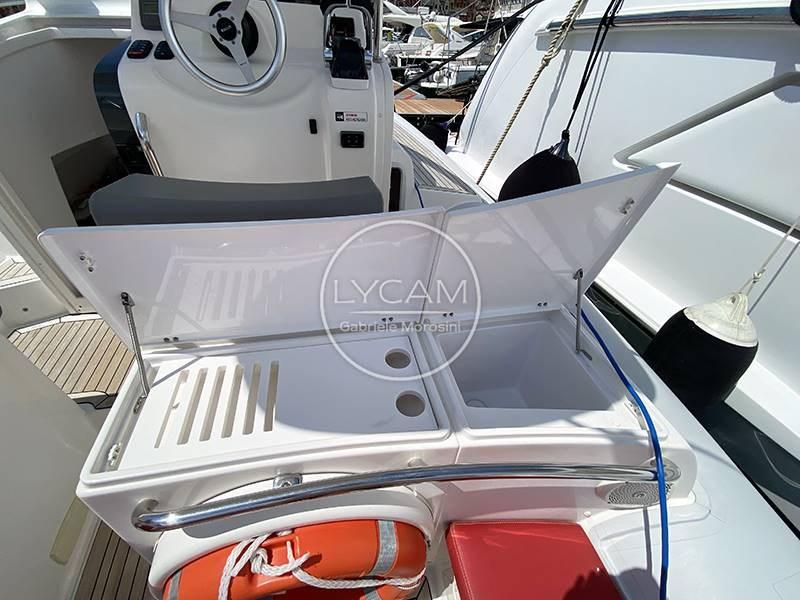Luci di navigazione; Luce di fonda; Conta catene (Quick); Radiocomando verricello; Inverter Marinco 12/700; Luce a led hard top; Plancia di poppa subacquee; 4 batterie (1 ancora frigo) 2 servizi Autoclave; Pompe di sentina; Scaletta bagno; Stereo Hi-Fi; Cuscineria prendisole a prua; Dotazioni di sicurezza; Lavello; Frigo; Tendalino con pali in carbonio