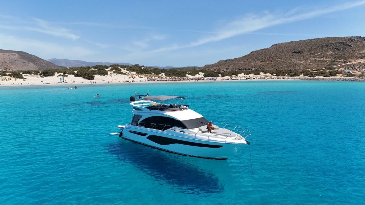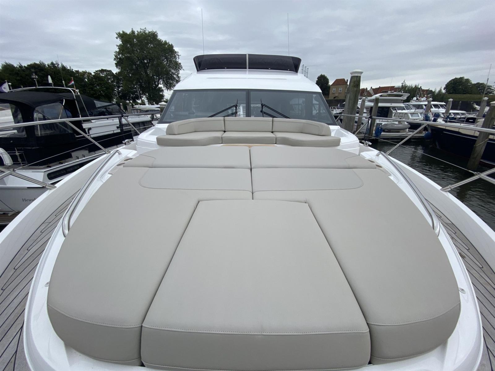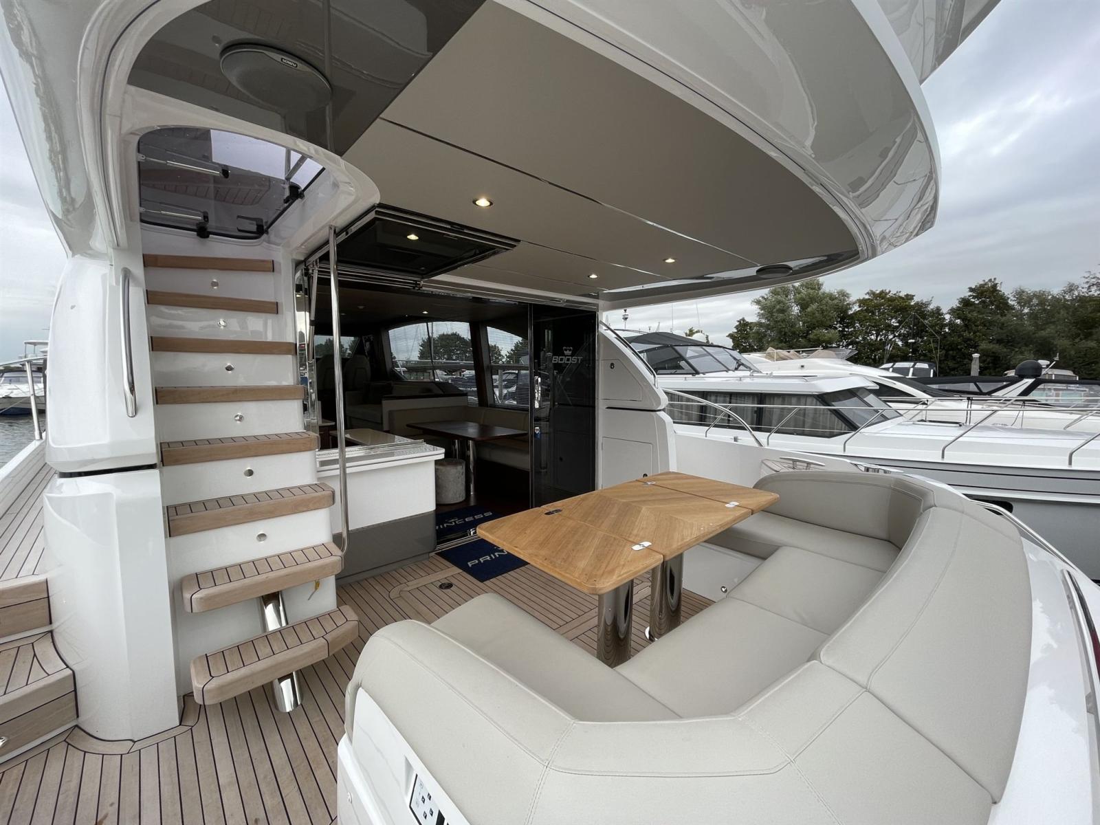 Il Princess F62 è uno yacht a ponte di volo completo che offre uno spazio notevole per la sua lunghezza. Con il suo flybridge progettato con cura, dispone di due aree salotto dove puoi goderti comodamente con gli ospiti, sopra le quali c'è anche un ampio diletto.