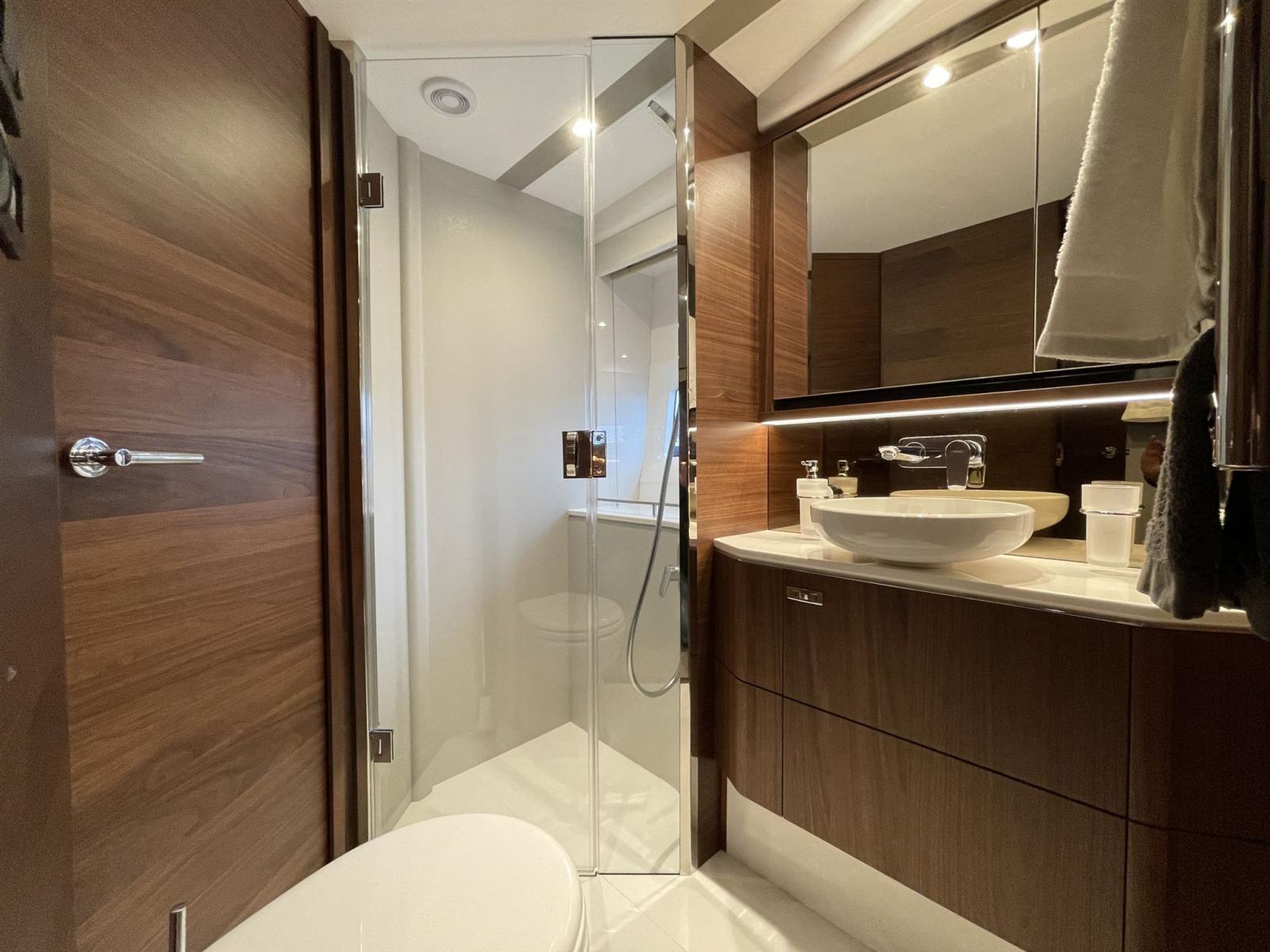 Il spazioso salone sul ponte principale è collegato al mondo esterno grazie alle bellissime alte finestre laterali. La cucina accogliente sul lato di dritta si trova a poppa e scorre senza soluzione di continuità nel ponte posteriore. La posizione di sterzo prevede due sedili completi e un sedile accogliente su ciascun lato. Sotto coperta, l'F62 può ospitare sei ospiti in tre cabine con bagno privato splendidamente arredate, illuminate dalla luce naturale grazie alle eleganti finestre dello scafo. Questa barca è stata consegnata originariamente da noi nel 2021 e offre varie opzioni come; uno stabilizzatore giroscopico, un telecomando per yacht, una telecamera Flir, ecc. In breve, uno yacht flybridge molto completamente attrezzato, pronto per il suo nuovo proprietario.