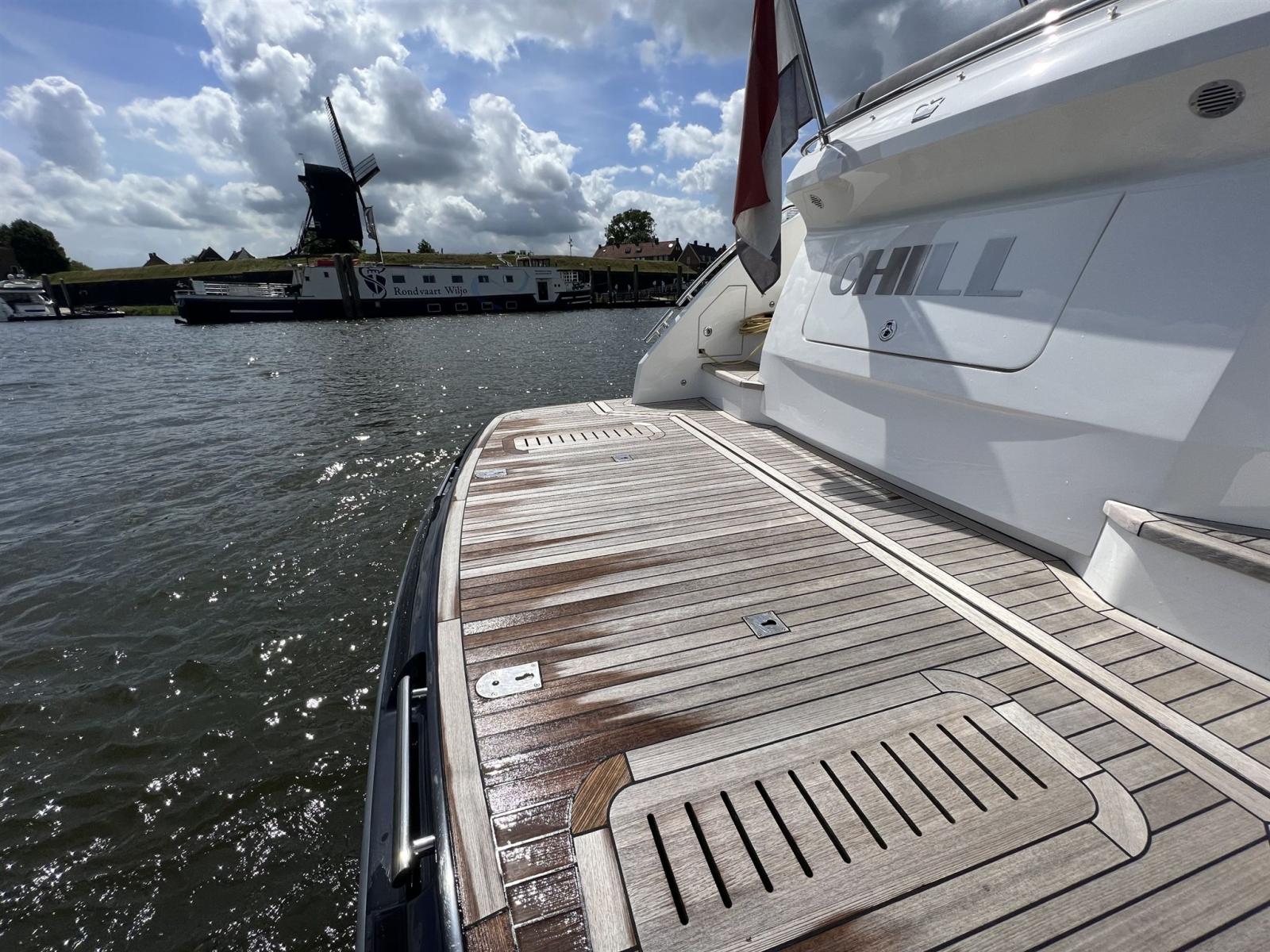 ð ponti laterali in teak posati, ponte di prua, cabina di pilotaggio e piattaforma da bagno
