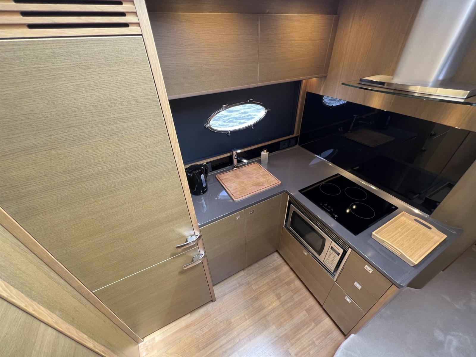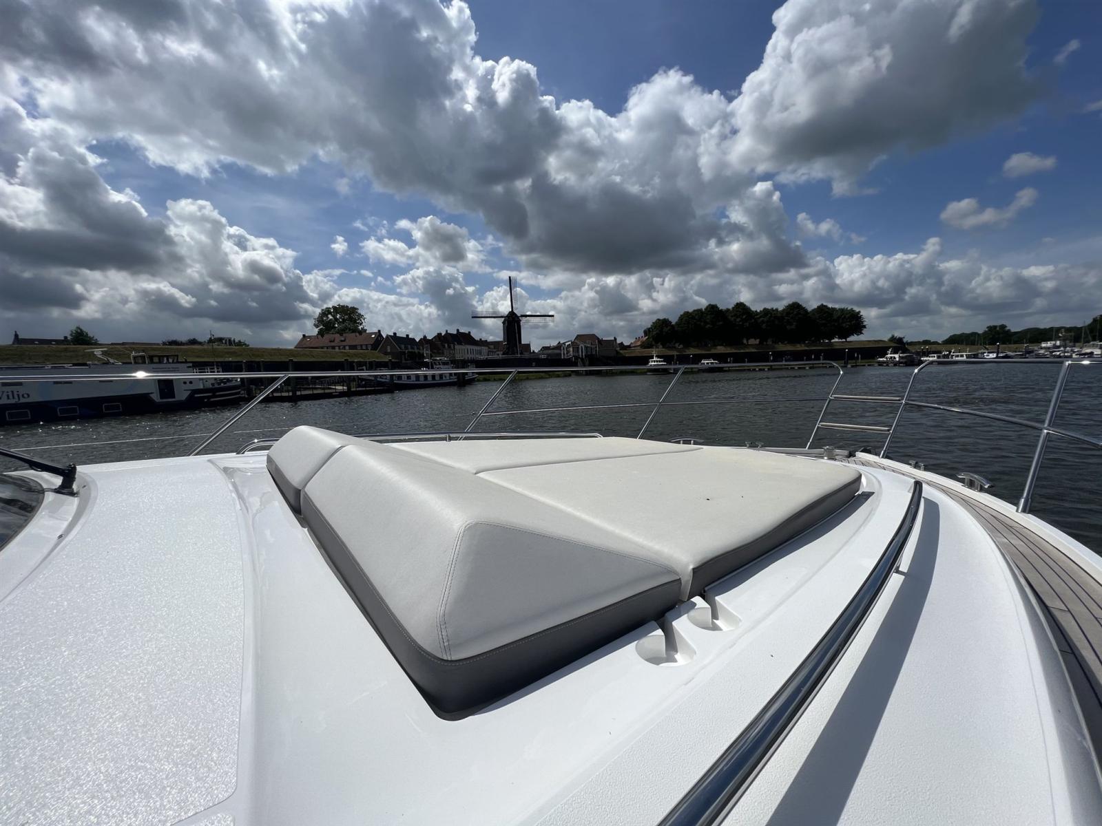 Dotato di numerosi optional. Questi includono: posizionamento dinamico, telecomando Yacht Control, riscaldamento, aria condizionata e telecamera posteriore. Il generoso tetto apribile