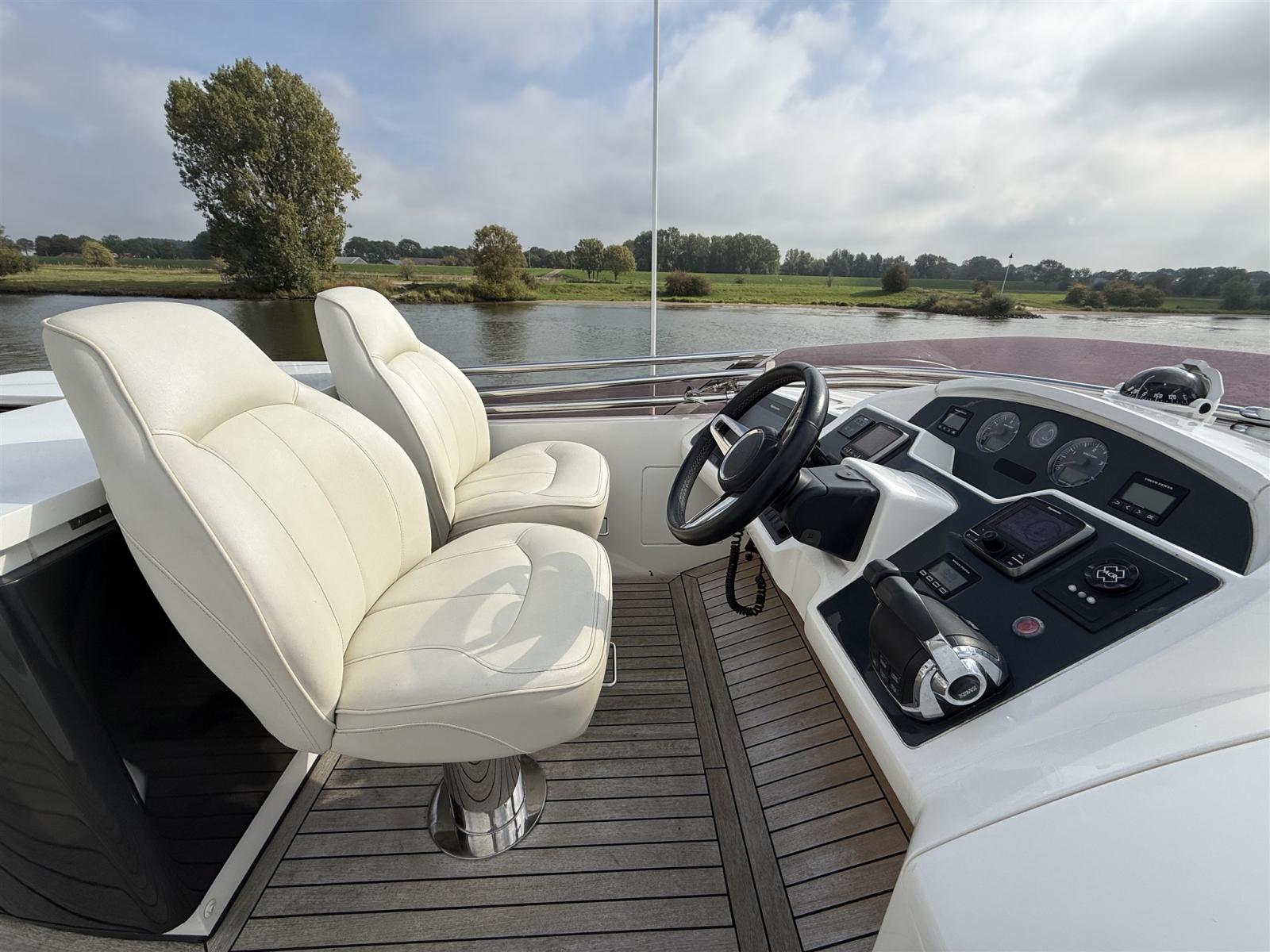 Questo bellissimo Princess 56 del 2015 combina in modo impressionante stile, prestazioni e comfort. Questo lussuoso yacht a motore offre interni spaziosi e ben progettati con materiali di alta qualità e finiture eccellenti. Il salone è luminoso e invitante, con ampie finestre che offrono una vista mozzafiato sull'acqua. All'esterno, l'ampio ponte di poppa, il generoso flybridge e la piattaforma da bagno idraulica offrono molto spazio per rilassarsi o intrattenere gli ospiti. Grazie a due potenti motori Volvo Penta, ciascuno da 800 CV, e a una tecnologia avanzata, il Princess 56 offre una guida fluida e stabile. La nave è riccamente attrezzata e dispone, tra le altre cose: di controllo dello yacht, telecomando, passerella e piattaforma da bagno idraulica. Insomma, uno yacht perfetto che trasuda eleganza e classe, pronto per tante nuove avventure sull'acqua.