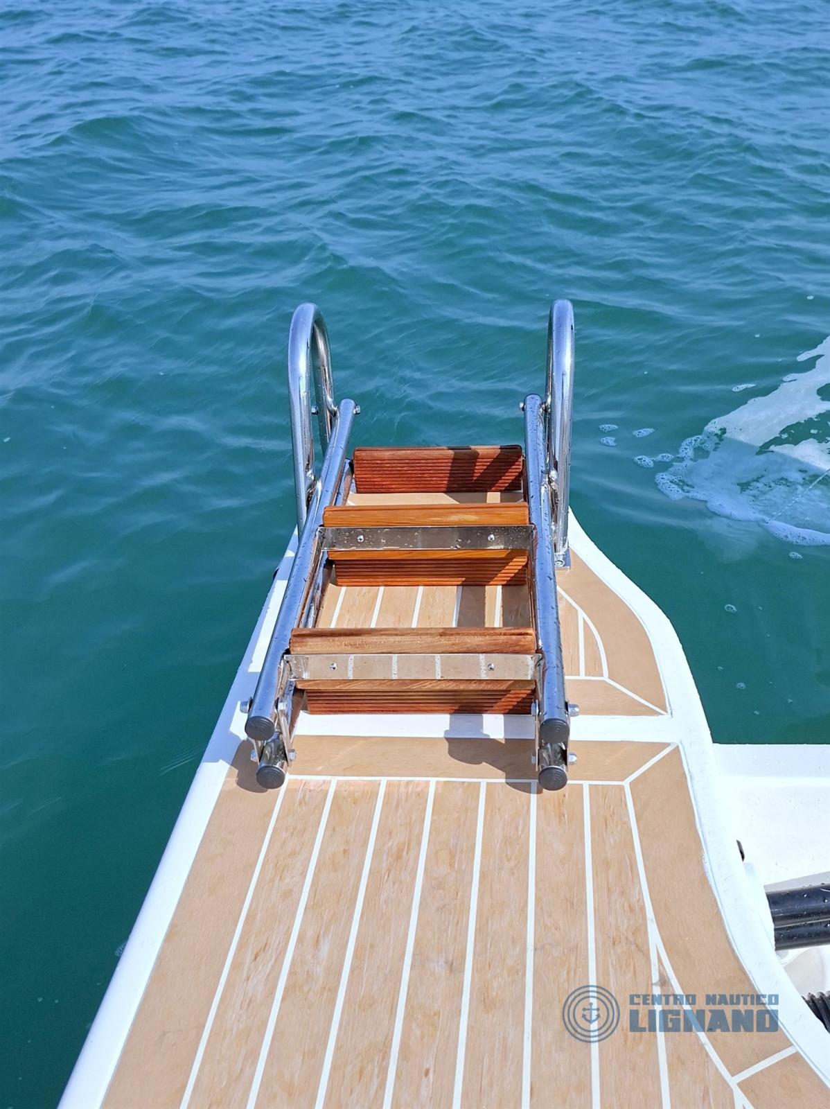 Allarme motore, Autoclave, 2 Batterie, Corrimano, Doccia esterna, Luci di cortesia, Ponte in teak, Porta ingresso, Rollbar, Salpa Ancore Elettrico, Scaletta da bagno, Tavolo pozzetto, Tromba.