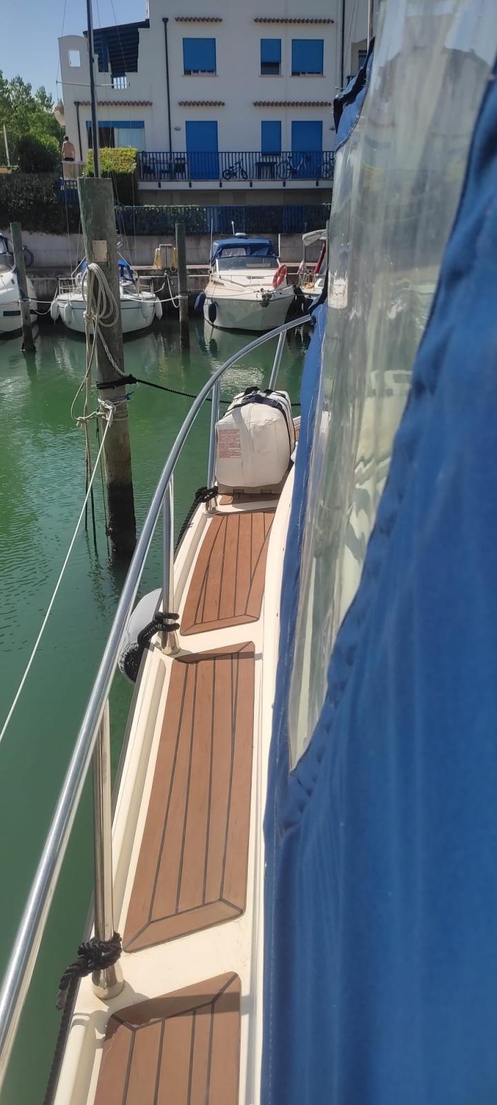 Allarme fumo/gas, Autoclave, 3 Batterie (nuove 2022), Camminamenti laterali in teak (sintetico), Flap elettrici, Impianto antincendio, Indicatori Flaps, Lavandino nel Pozzetto, Luci di cortesia, Piattaforma, Pompa di sentina automatica, Porta ingresso, Pozzetto Teak (sintetico), Presa 220V banchina, Salpa Ancore Elettrico.