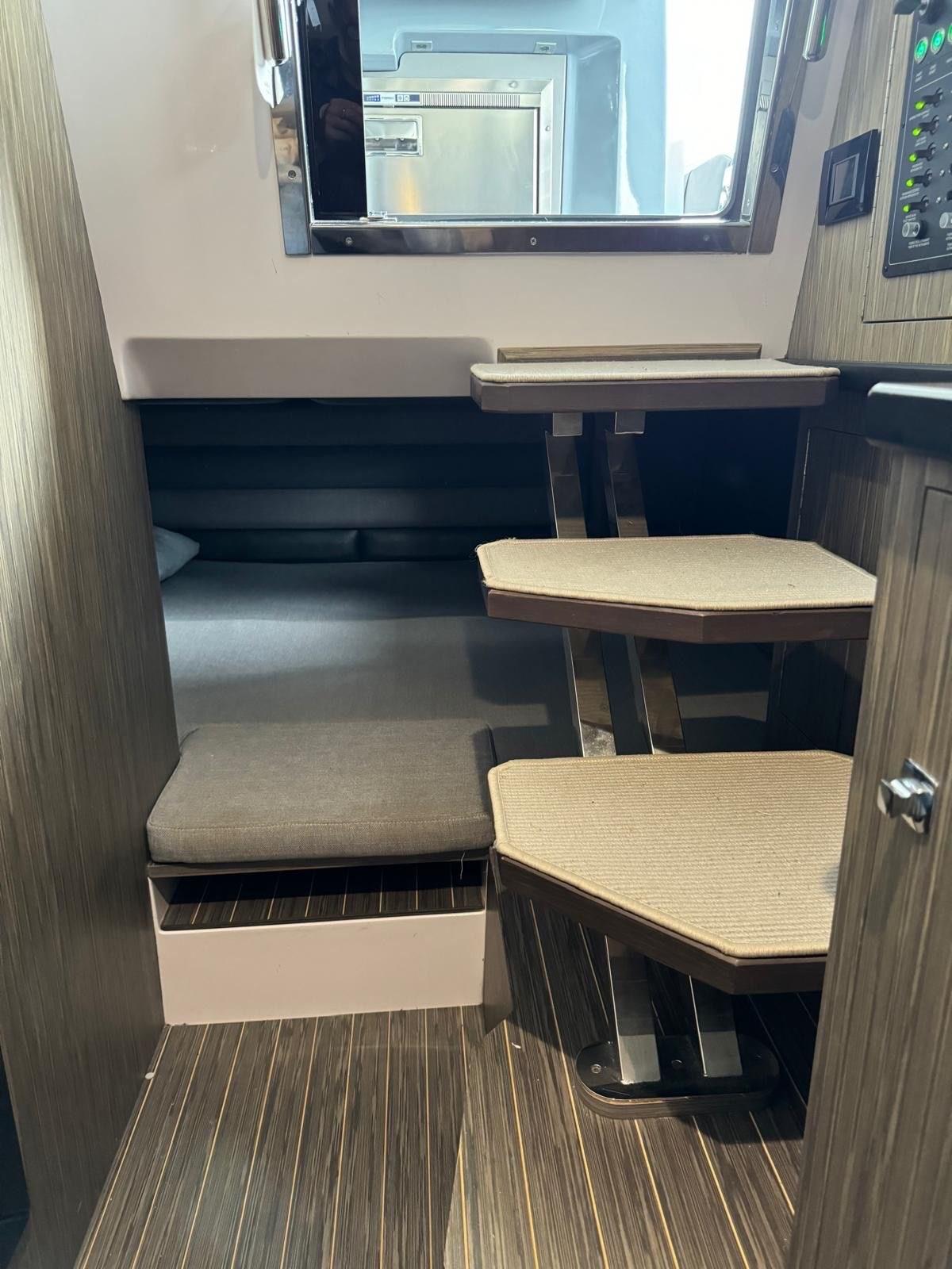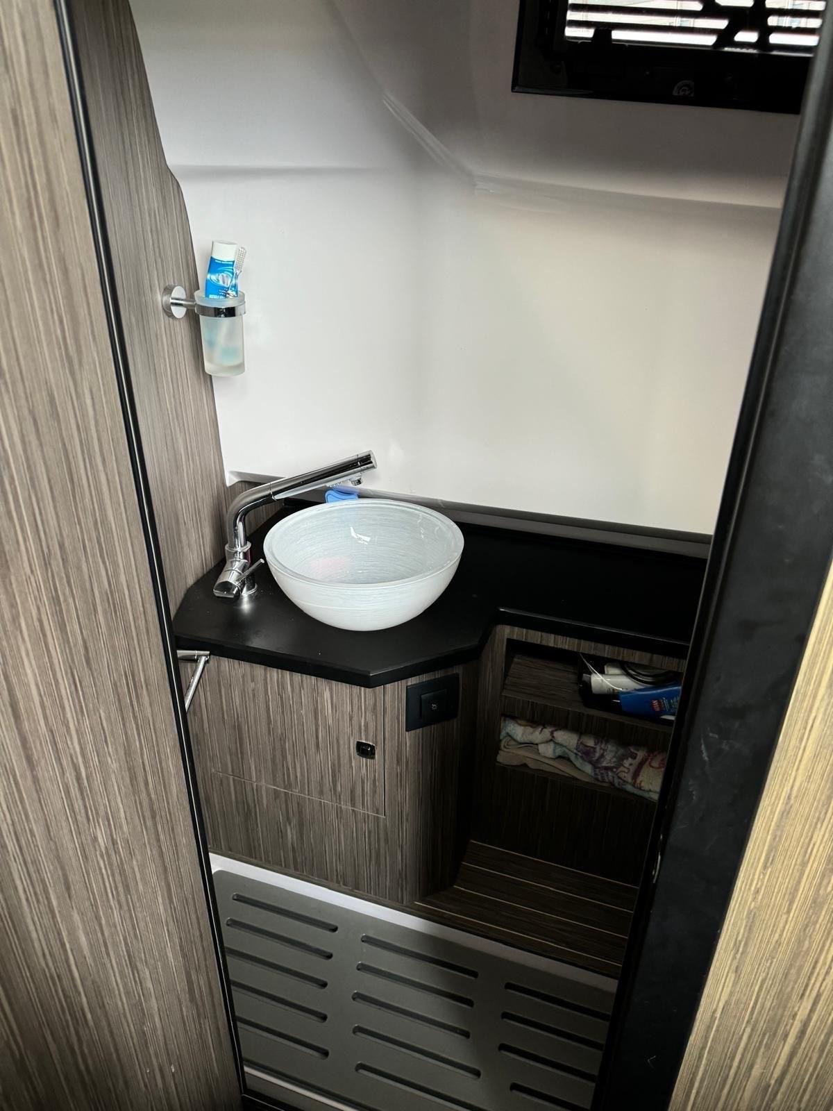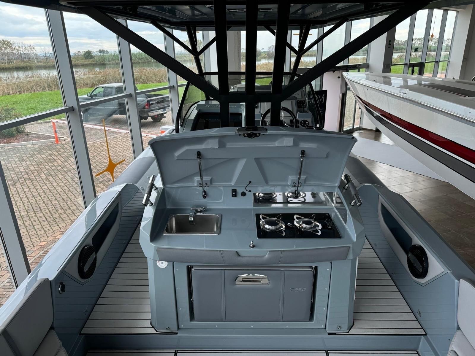 Ancora e catena • Faretti a LED • Prese USB • Presa di corrente 110/220V • Doccetta di poppa • Gonfiatore elettrico 12V • Lavello inox con rubinetto • Luci di navigazione • 2 scalette telescopiche a scomparsa • Portabicchieri e tientibene • Frigorifero cabina 50L • Kit tavolo e prendisole di poppa elettrico • Tasche portaoggetti • Salpa ancora elettrico • Impianto acqua dolce con serbatoio 150L • Impianto acque nere con serbatoio 60L con pompa di scarico e presa da banchina • Impianto stereo HERTZ con 2 altoparlanti interni + 4 esterni • Poggiapiedi • Illuminazione a LED • Tromba elettrica • WC marino elettrico con serbatoio • GPS + ecoscandaglio • VHF • Elica di prua • Contacatena • Boiler • Aria condizionata • Frigo esterno • Kit tavolo elettrico • Tendalino.