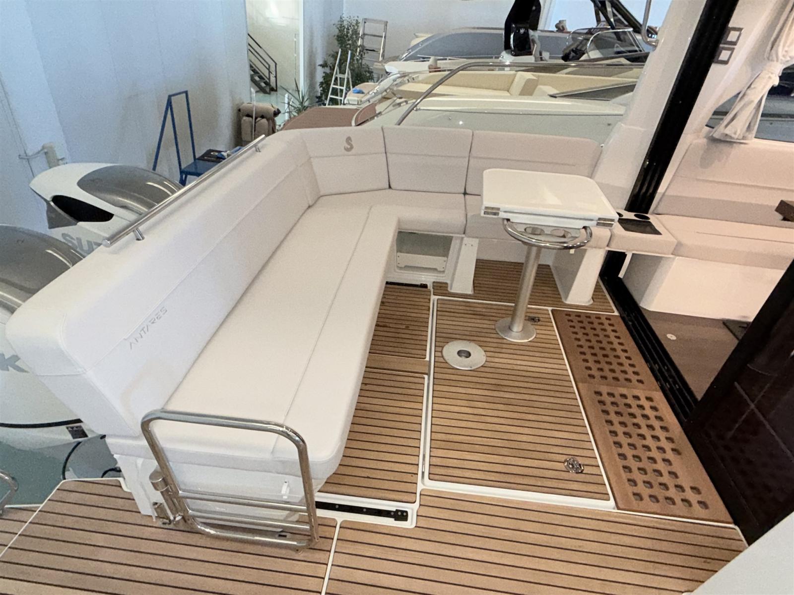 Allarme fumo/gas, Allarme motore, Autoclave, Doccia esterna, Flap elettrici, Hard top, Indicatori Flaps, Luci di cortesia, Parabordi, Piattaforma, Pompa di sentina automatica, Pompa di sentina manuale, Porta laterale, Pozzetto Teak, Presa 220V banchina, Salpa Ancore Elettrico, Scaletta da bagno, Tavolo pozzetto, Tromba.