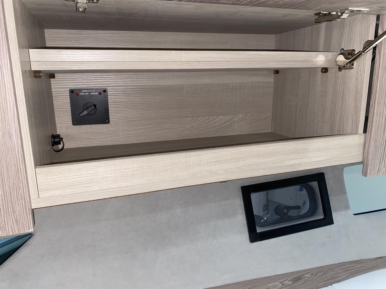 Boiler, Clima reversibile, Impianto acque nere, Inverter (per impianto Tv), Pavimento interno in legno, Prese interne 12v, Prese interne 220v, Serbatoio Acque Nere, WC marino elettrico.