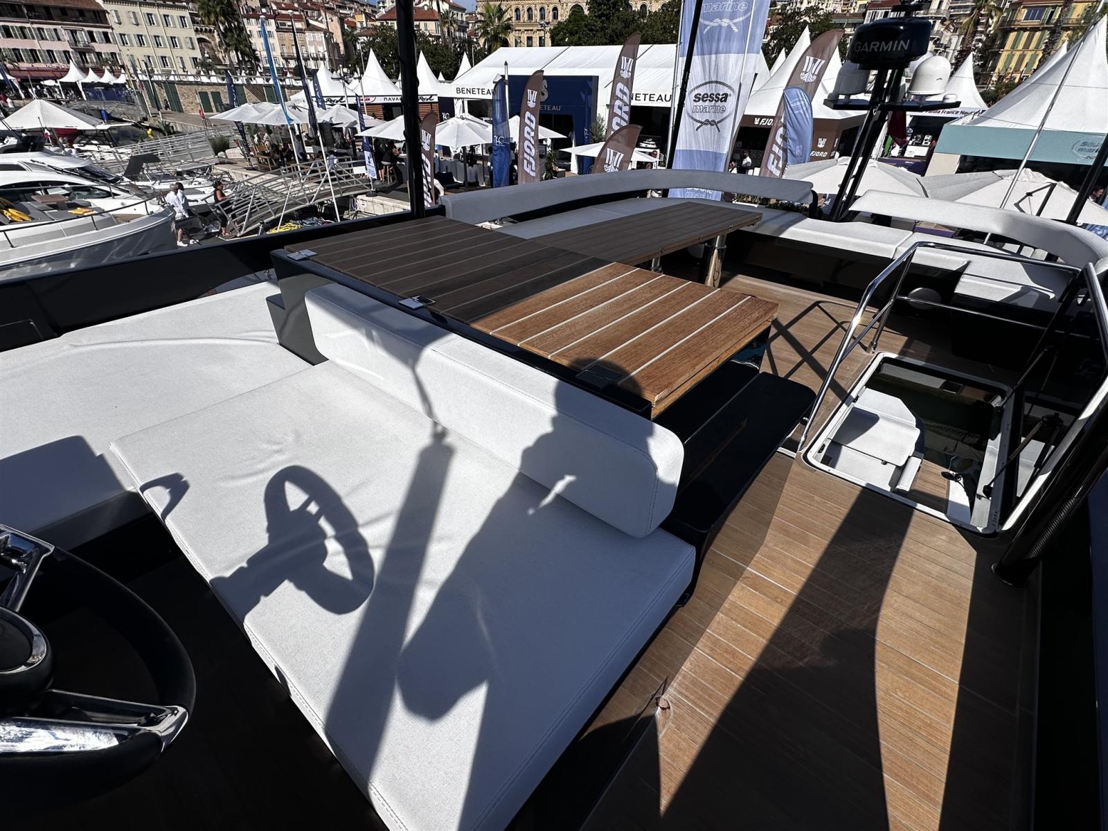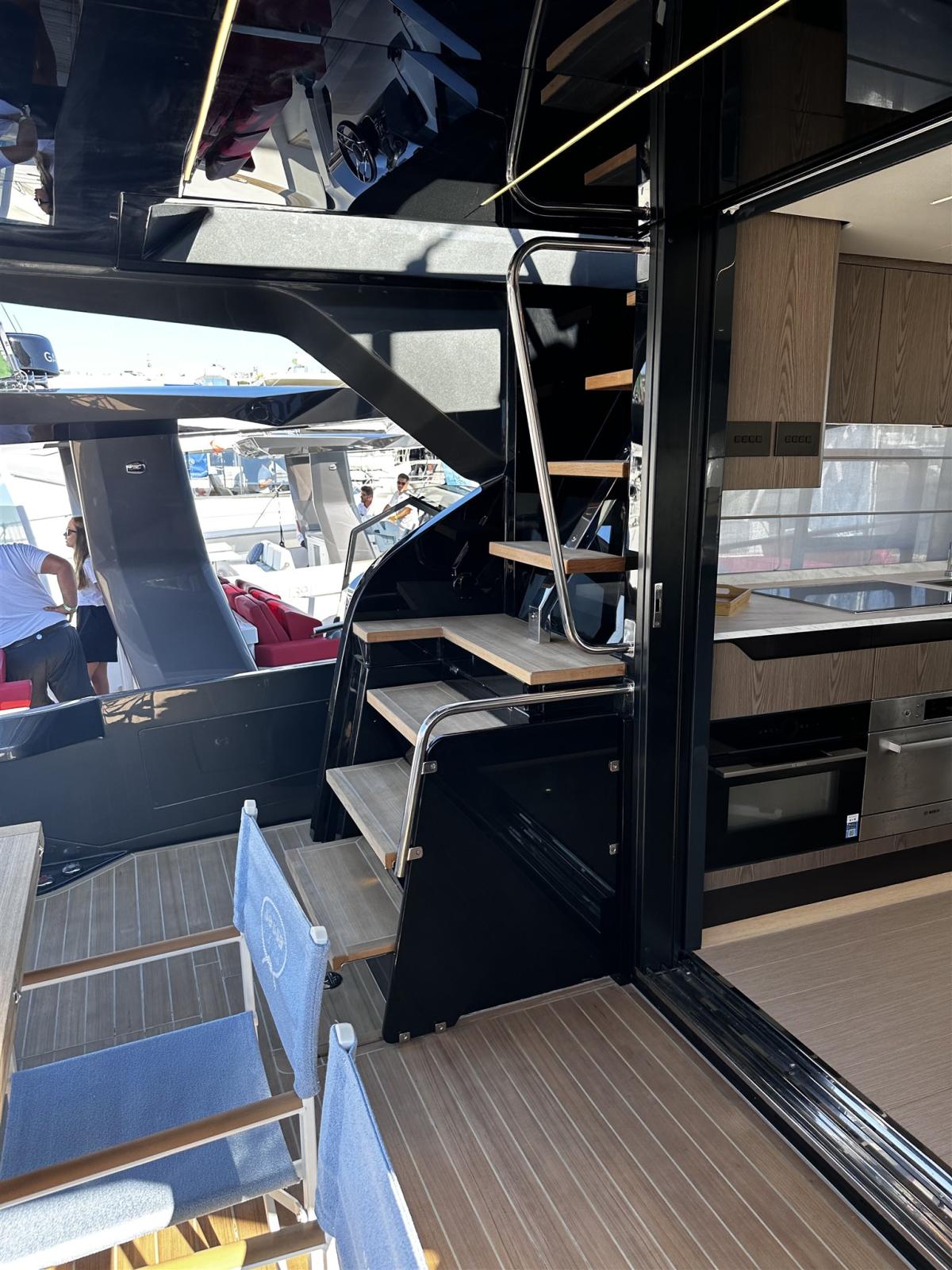 Allarme motore, Apertura Vano Motore Elettrica, Auto Dynamic Trim Interceptor, Autoclave, Camminamenti laterali in teak, Colorazione speciale, Doccia esterna, Flap elettrici, Garage per tender, Impianto antincendio, Indicatori Flaps, Luci di cortesia, Luci subacquee, Passerella, Piattaforma, Pozzetto Teak, Presa 220V banchina, Salpa Ancore Elettrico, Scaletta da bagno, Tavolo pozzetto, Tromba.