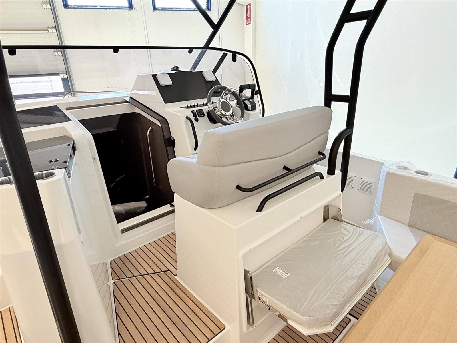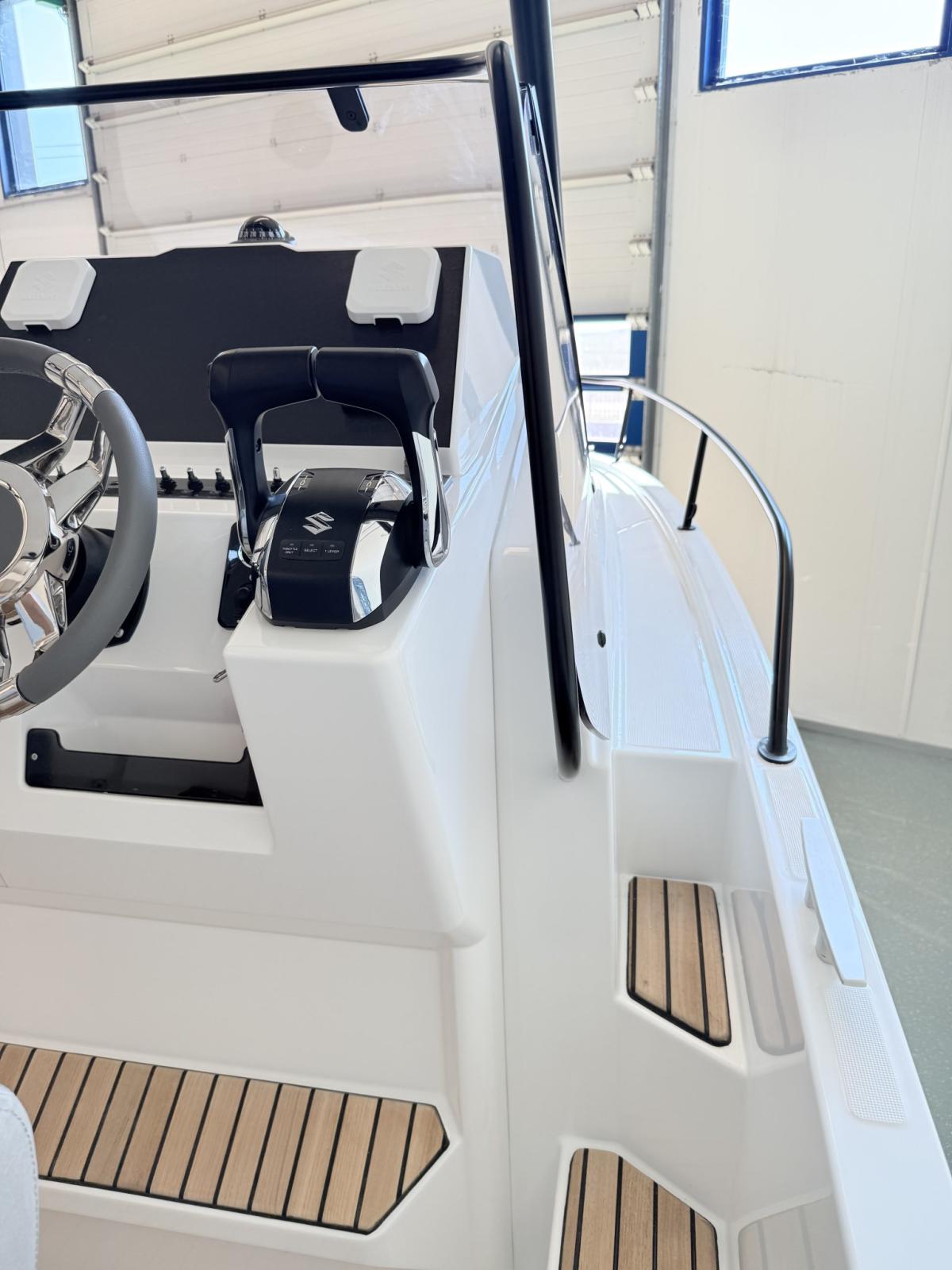 2 Allarme motore, Autoclave, Camminamenti laterali in teak, Colorazione speciale, Doccia esterna, Gancio Traino per Sci Nautico, Lavandino nel Pozzetto, Luci subacquee, 2 Piattaforma, Pompa di sentina manuale, Pozzetto Teak, Presa 220V banchina, Salpa Ancore Elettrico, Scaletta da bagno, Tavolo pozzetto, Tromba, T-Top.