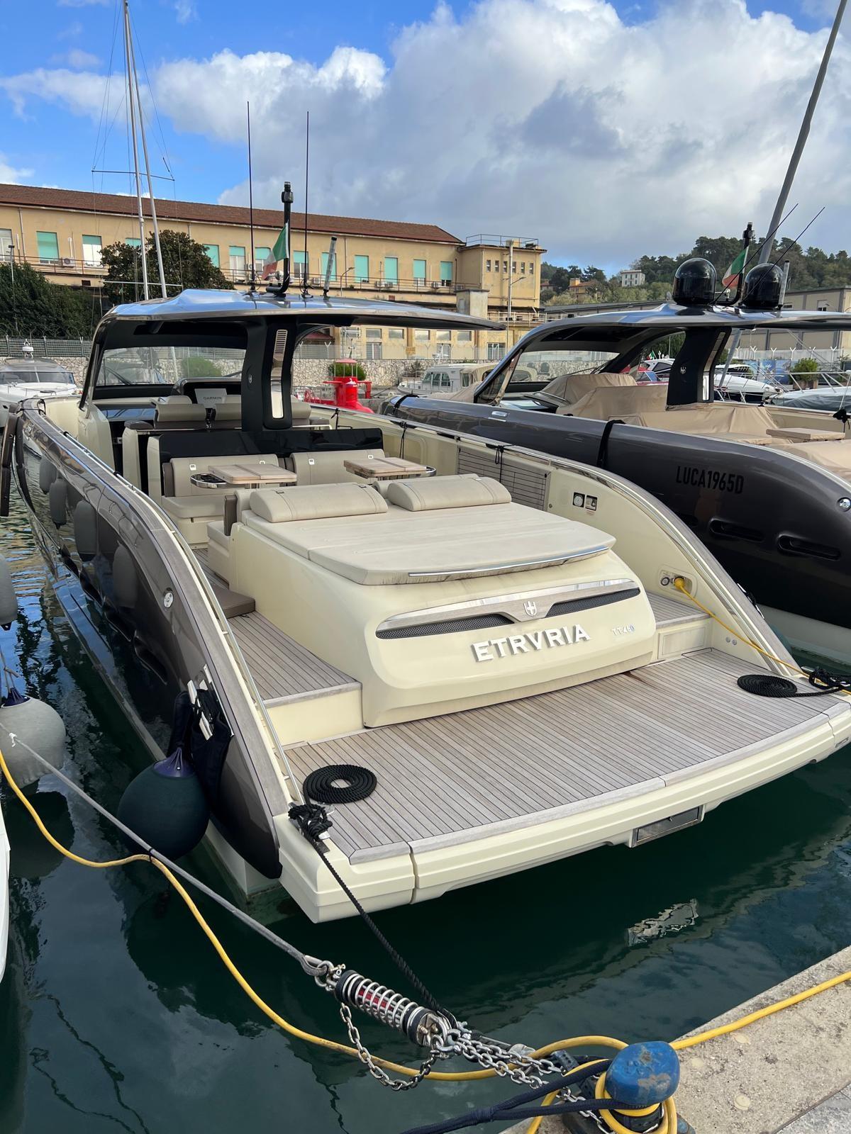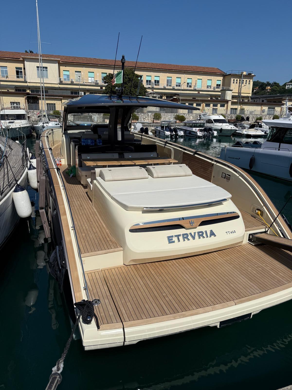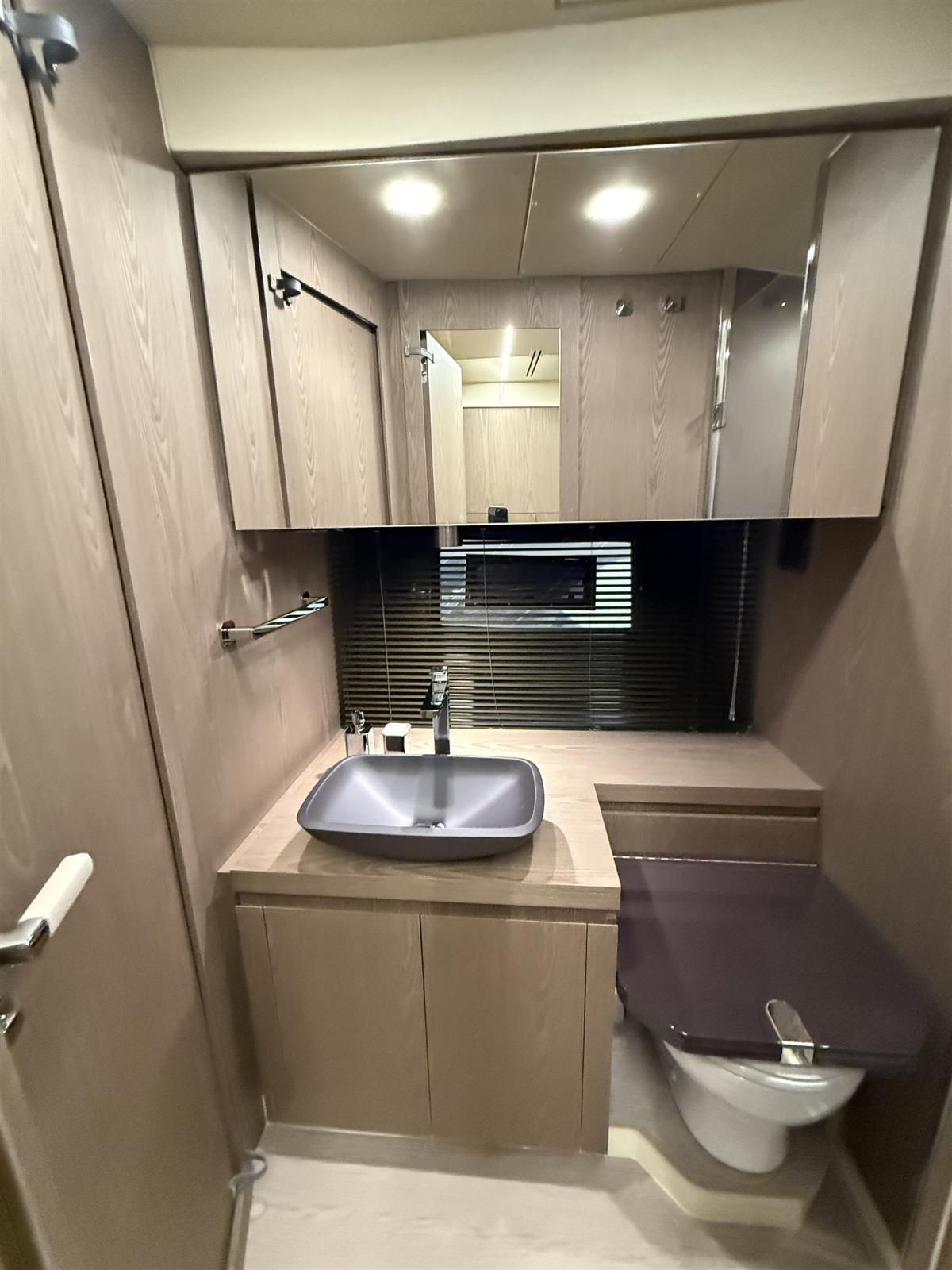 Allarme motore, Apertura Vano Motore Elettrica, Auto Dynamic Trim Interceptor, Autoclave, Camminamenti laterali in teak, Cavo corrente di banchina, Colorazione speciale (Wild Bronze), Doccia esterna, Flap elettrici (Interceptor), Hard top (carbonio), Indicatori Flaps, Lavandino nel Pozzetto, Luci di cortesia, Luci subacquee, Parabordi, Passerella (idraulica), Piattaforma (idraulica - tender lift), Pompa di sentina automatica, Pozzetto Teak, Presa 220V banchina, Salpa Ancore Elettrico, Scaletta da bagno, Tromba, Winch Elettrico (risalita tender).