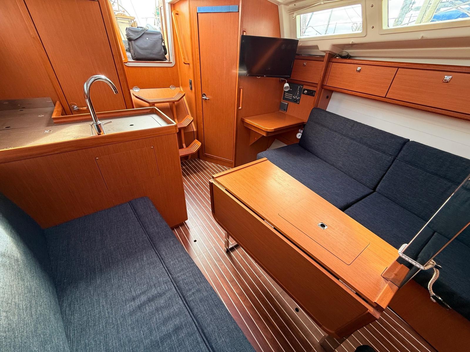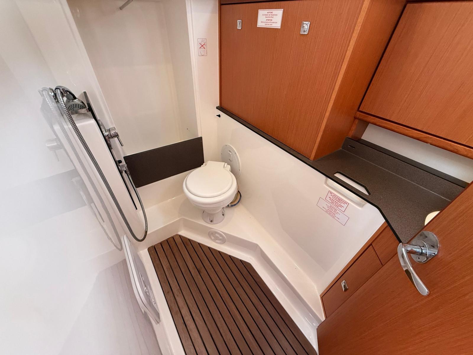 Accessoriata con elica di prua, elettronica completa Garmin, pilota automatico, randa e genoa avvolgibili, wc elettrico, bimini e sprayhood.