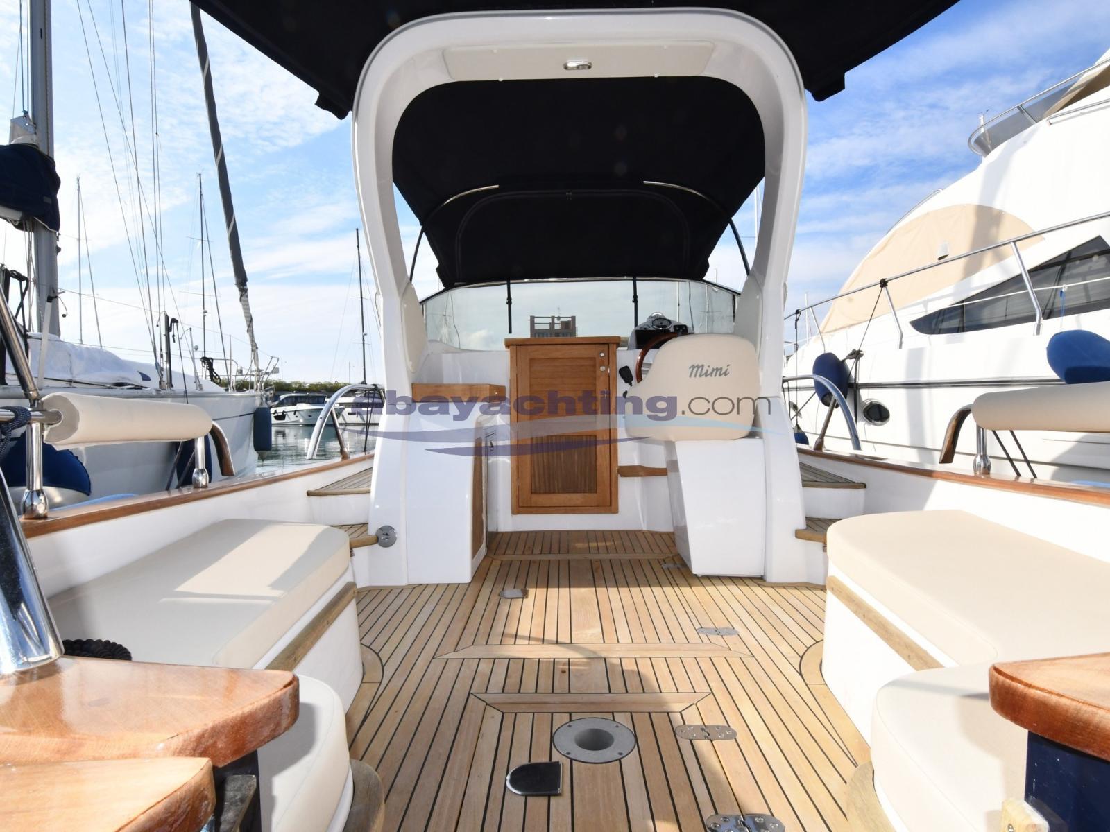 Allarme motore, Allarme sentina, Ancora (+ catena 50 mt), Autoclave, Camminamenti laterali in teak, Colorazione speciale, Doccia esterna, Flap elettrici, 6 Parabordi, Piattaforma, Pompa di sentina automatica, Pompa di sentina manuale, Porta ingresso, Pozzetto Teak, Presa 220V banchina, Rollbar, Scaletta da bagno, Tavolo pozzetto (Amovibile), Tuga in teak.