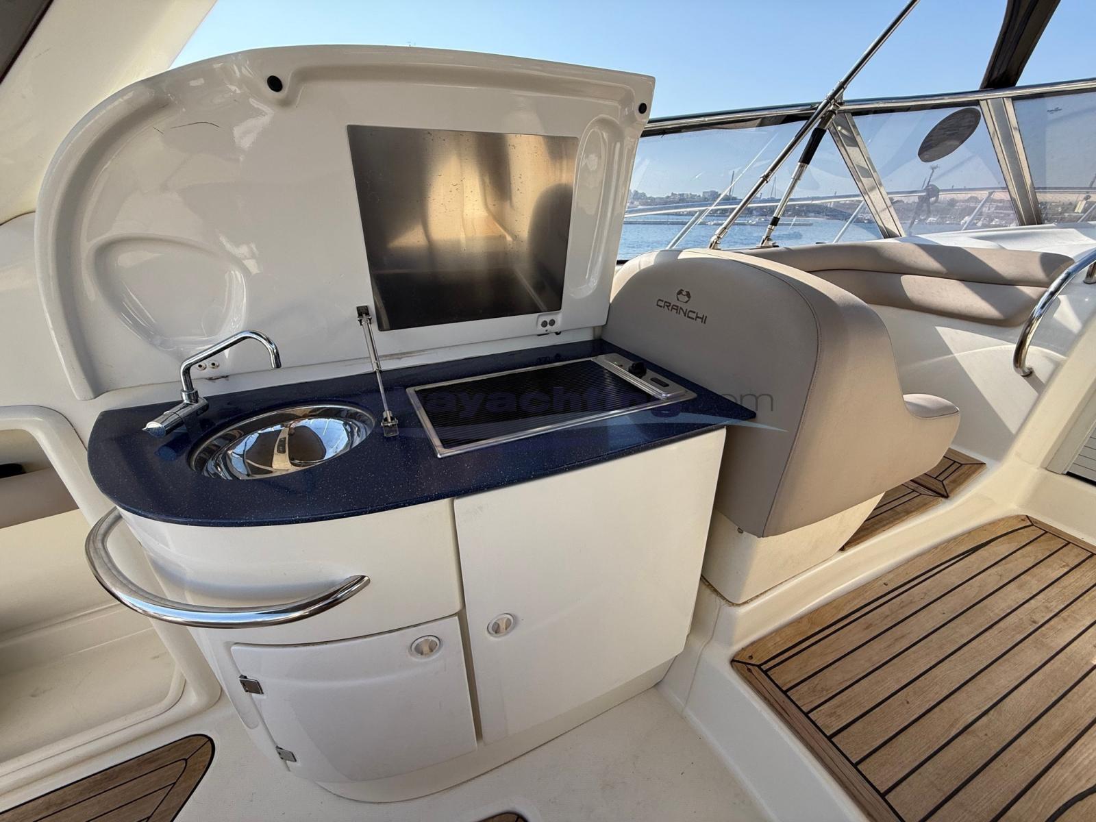Cranchi 41 Endurance molto ben accessoriato: generatore 220v, aria condizionata (caldo / freddo), elica di prua, tender garage, passerella idraulica, doppio frigorifero interno/esterno, piastra elettrica in pozzetto, bimini ed elettronica RAYMARINE completa di pilota automatico. Motorizzazione Volvo Penta da 350hp con meno di 800 ore di utilizzo.