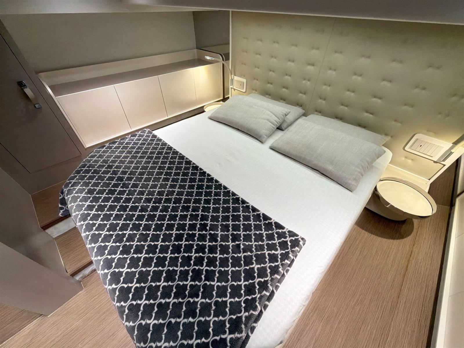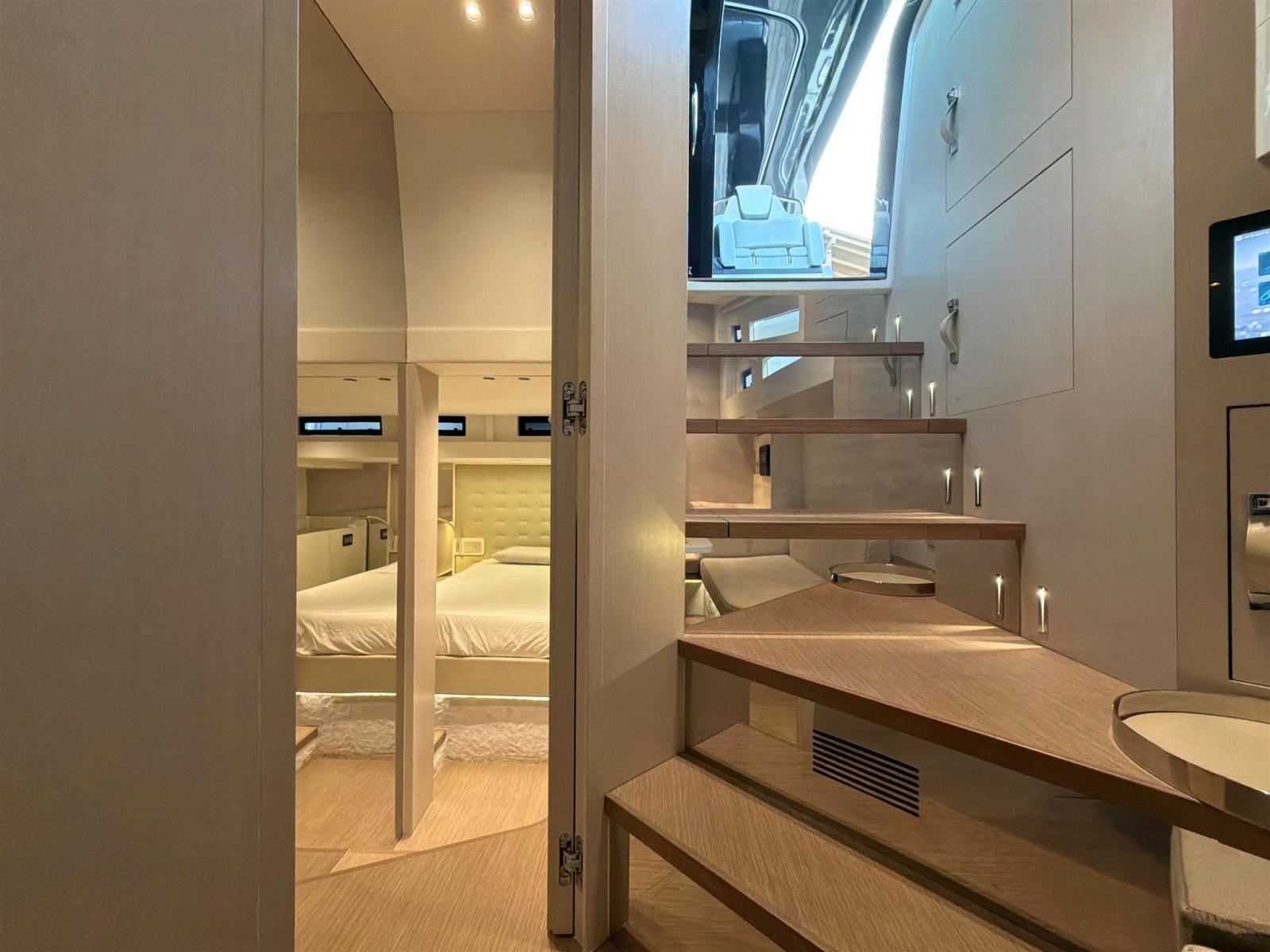 VERNICIATURA SCAFO E COPERTA PERSONALIZZATA, TERRAZZE LATERALI APRIBILI, SEDUTA DI GUIDA REGOLABILE ELETTRICAMENTE (UP/DOWN), JOYSTICK VOLVO PENTA, INTERCEPTOR ZIP WAKE, SYSTEM AUTOTRIM VOLVO PENTA, PASSERELLA IDRAULICA BESENZONI, PIATTAFORMA IDRAULICA CON FORMAZIONE SCALINI IN DISCESA, STABILIZZATORE GYRO QUICK, ARIA CONDIZIONATA REVERSIBILE C/F 45.000 BTU, 3 TV 50"+32"+32", IMPIANTO STEREO FUSION APOLLO AMPLIFICATO CON DISPLAY PRUA/CENTRO/POPPA, 12 ALTOPARLANTI JL AUDIO M6 RGB SOUND SYSTEM, TELECAMERA LOCALE ANCORA E POPPA, DOPPIA TELECAMERA IN SALA MACCHINE CON ALLARME FUMI, TERMOCAMERA FLIR SU HT, INVERTER 24/220 V 2500 W, DOPPIO TONNEGGIO A POPPA 1000 W, ELICA DI PRUA PROPORZIONALE, DOMOTICA RAYMARINE, GARAGE PER TENDER CON APERTURA IDRAULICA, TENDA ELETTRICA POZZETTO BESENZONI A SCOMPARSA + TELO OMBREGGIANTE CON PALI IN CARBONIO, VERRICELLO PER TENDER, CUSCINERIA COMPLETA E PRENDISOLE CON CHAISE LOUNGUE A PRUA COMPLETA DI TELI DI COPERTURA, TAVOLI POZZETTO CON MOVIMENTO ELETTRICO E POSSIBILITA' DI UNIRLI TRA DI LORO, AVVOLGICAVO 220 V ELETTRICO DIMMER PER LUCI DI CORTESIA LED E LUCI SUBACQUE, LUCI NEI BAGNI CON EFFETTO CROMOTERAPIA. WATERMAKER 130LT/H