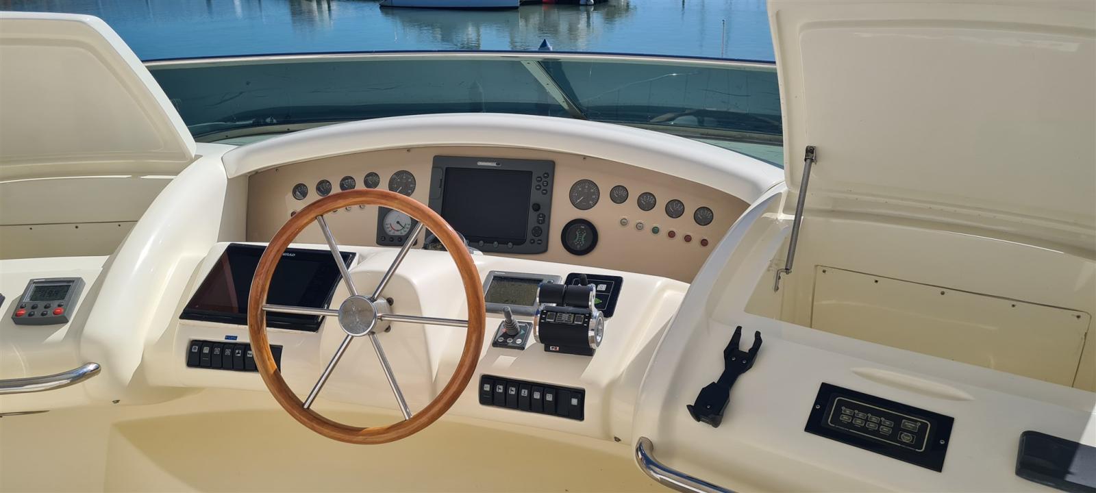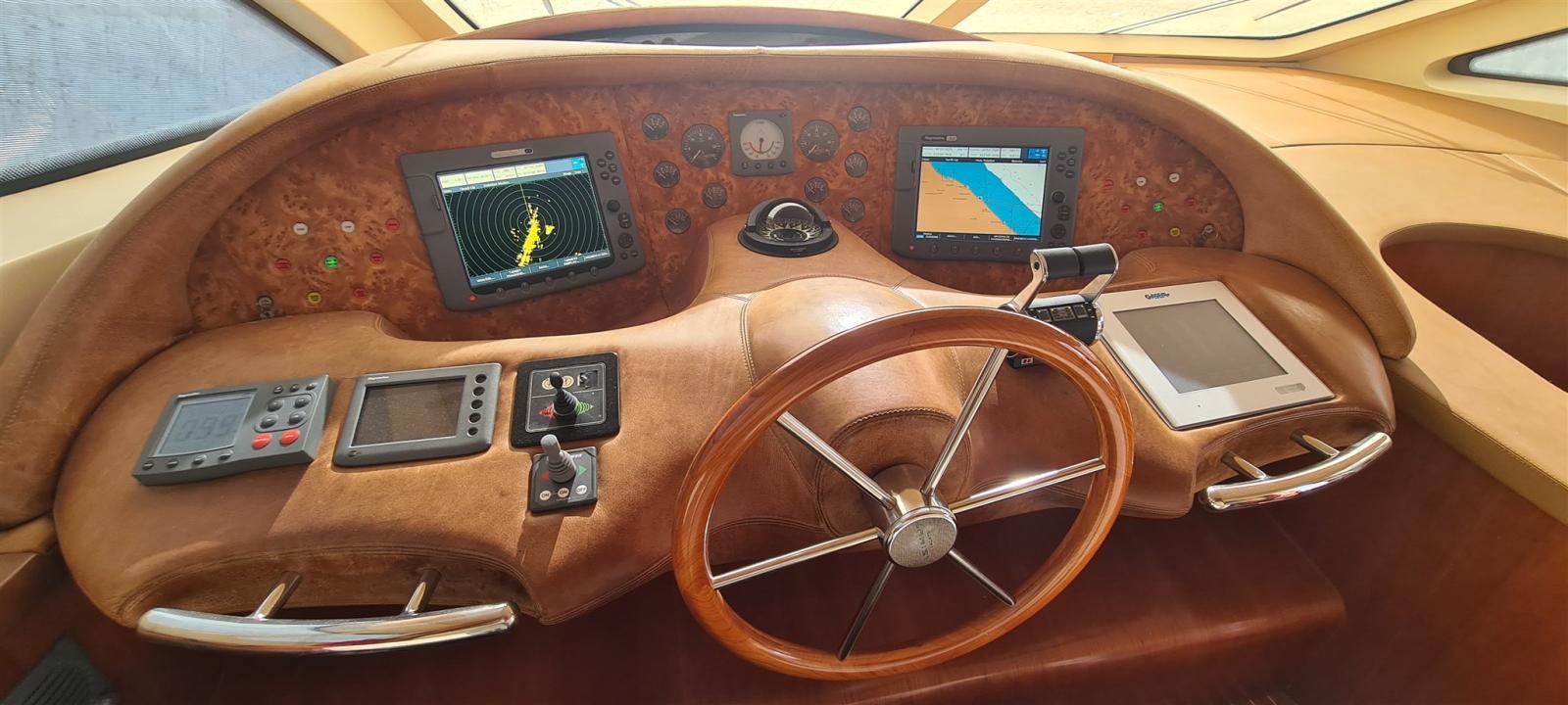 AIS, 2 Angolo barra, 2 Bussola, 2 Comando motori elettronico (MTU plancia e fly), Computer di bordo (ASEM), Display, 2 Ecoscandaglio (Raymarine), 2 GPS (Raymarine C 120), Interfaccia, Interfono, 2 Pilota automatico (Raymarine), Plotter con antenna GPS (Raymarine C 120), Radar (Raymarine E120), 2 Radio VHF (Simrad), Sedile Copilota (Regolabile), Strumenti di misura per motori.