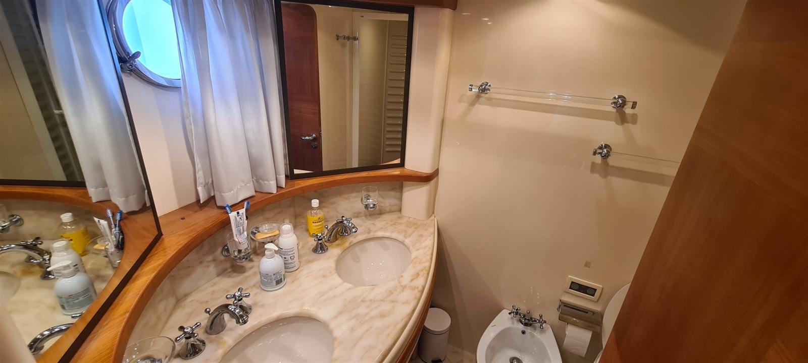 Cabina Vip a prua con bagno e cabina armadio - 2 cabine doppie/matrimoniale piu' terzo letto pullman a scomparsa con bagno - cabina armatore centro barca con bagno e cabina armadio