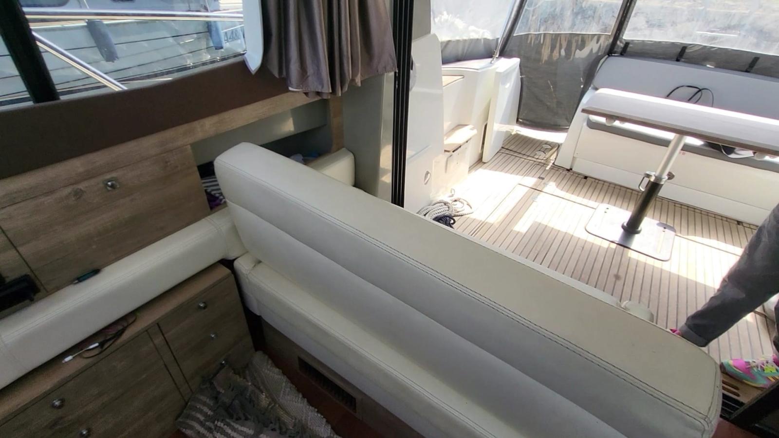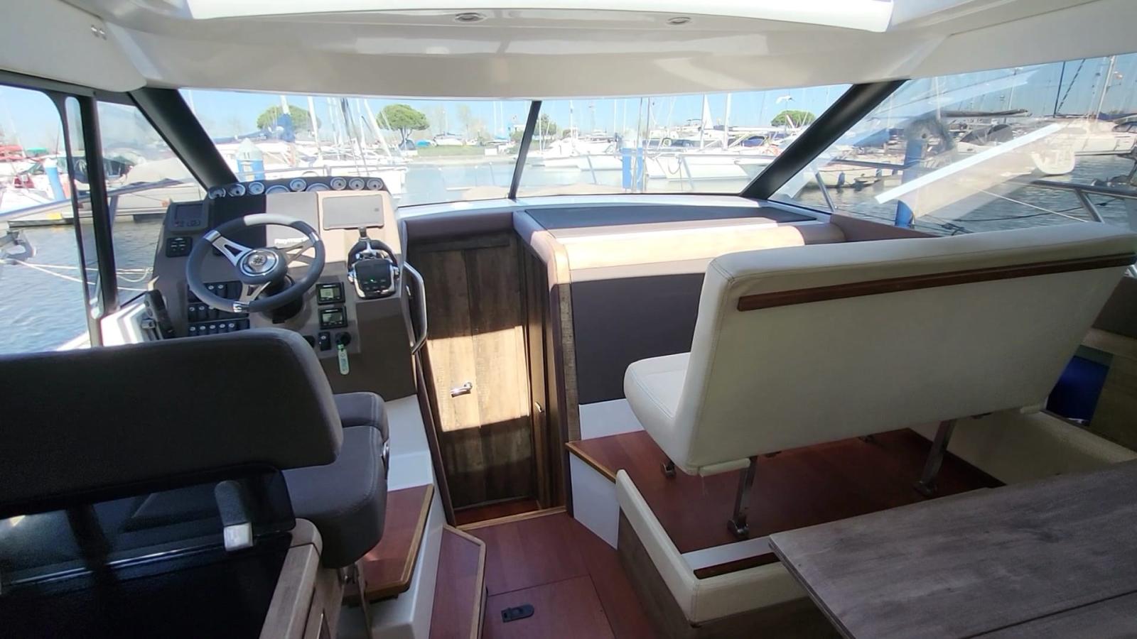 Alla sua eleganza contemporanea si aggiungono una trasparenza totale ed una grande facilità di circolazione. Gli arredi interni sono modulabili, sobri e comodi: cabine, grande bagno, salone, armadi... La trasmissione Stern drive e la potenza regolabile danno prova di un approccio responsabile. Un prodotto raffinato apprezzato dagli intenditori.Visione panoramica e consolle di guida completa semplificano e rendono dolce la navigazione lungo la costa. Grazie alla luminosità e ai grandi spazi ci si sente più vicini agli elementi.