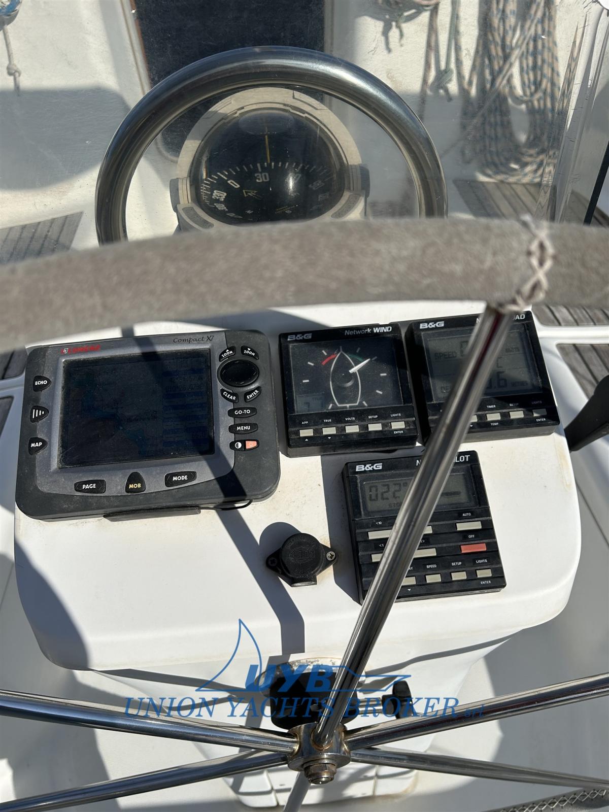 GPS (Lorenz), Pilota automatico (B&G), Plotter con antenna GPS, Radio VHF (Icom).