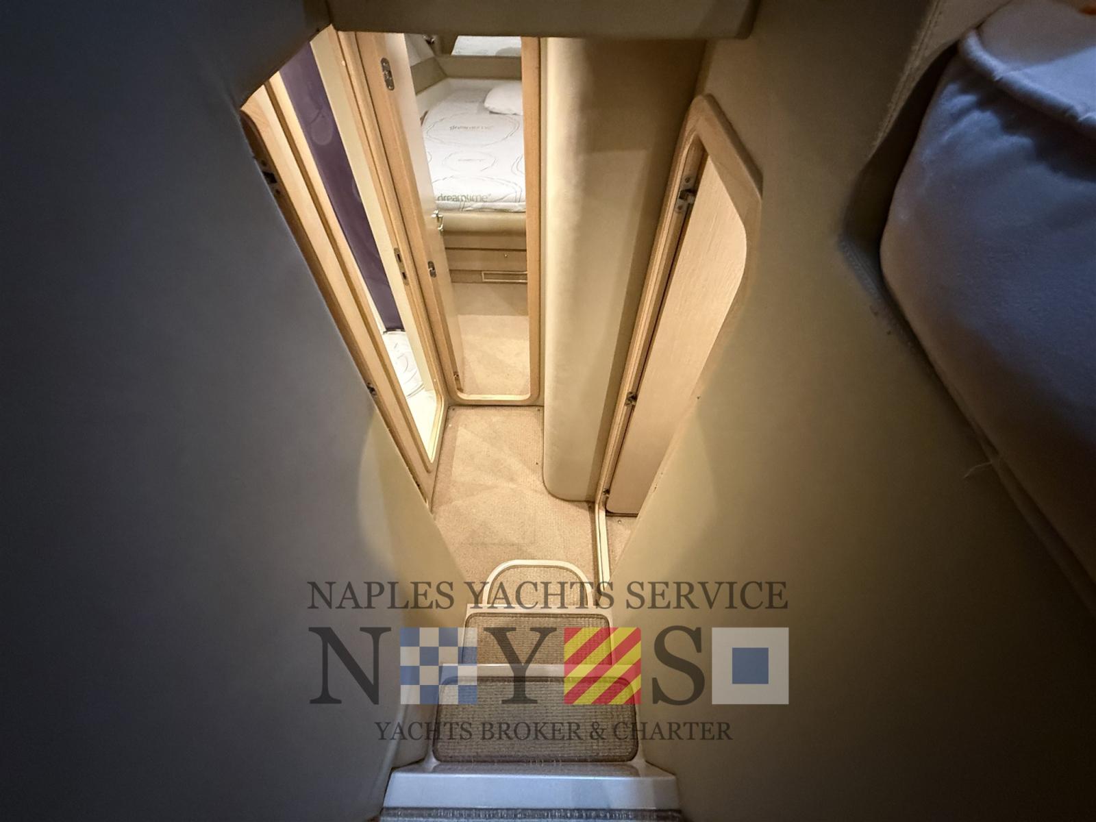 Autoclave, Doppia timoneria, Elica di prua - bow thruster (Side Power), Flap idraulici (N°2), 5 Luci di cortesia, Passerella (Besenzoni), Piattaforma, Pompa di sentina automatica, Pozzetto Teak, Presa 220V banchina, Raddrizzatore, Salpa Ancore Elettrico, Scaletta da bagno, Tromba, Winch Elettrico (poppa).