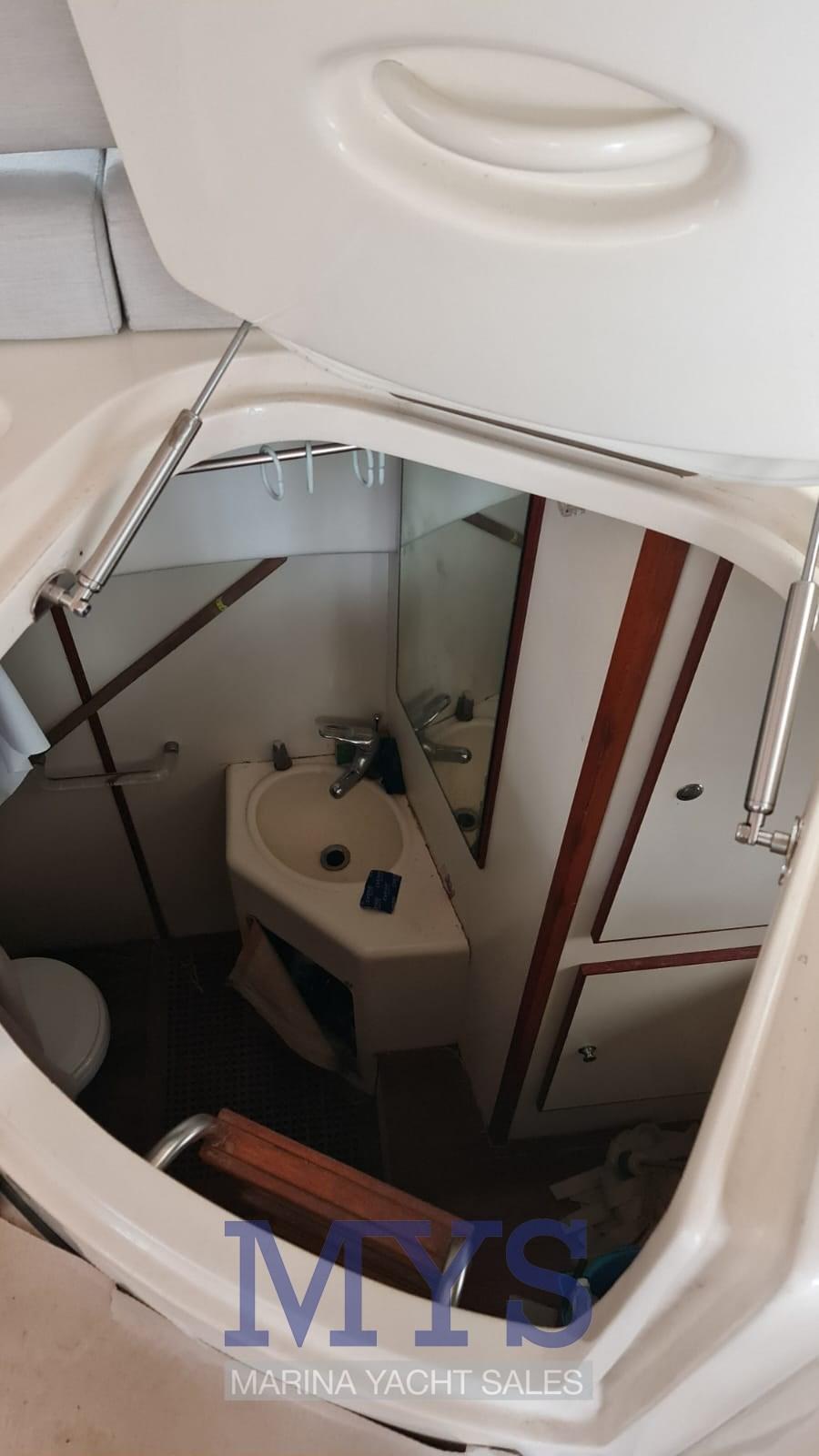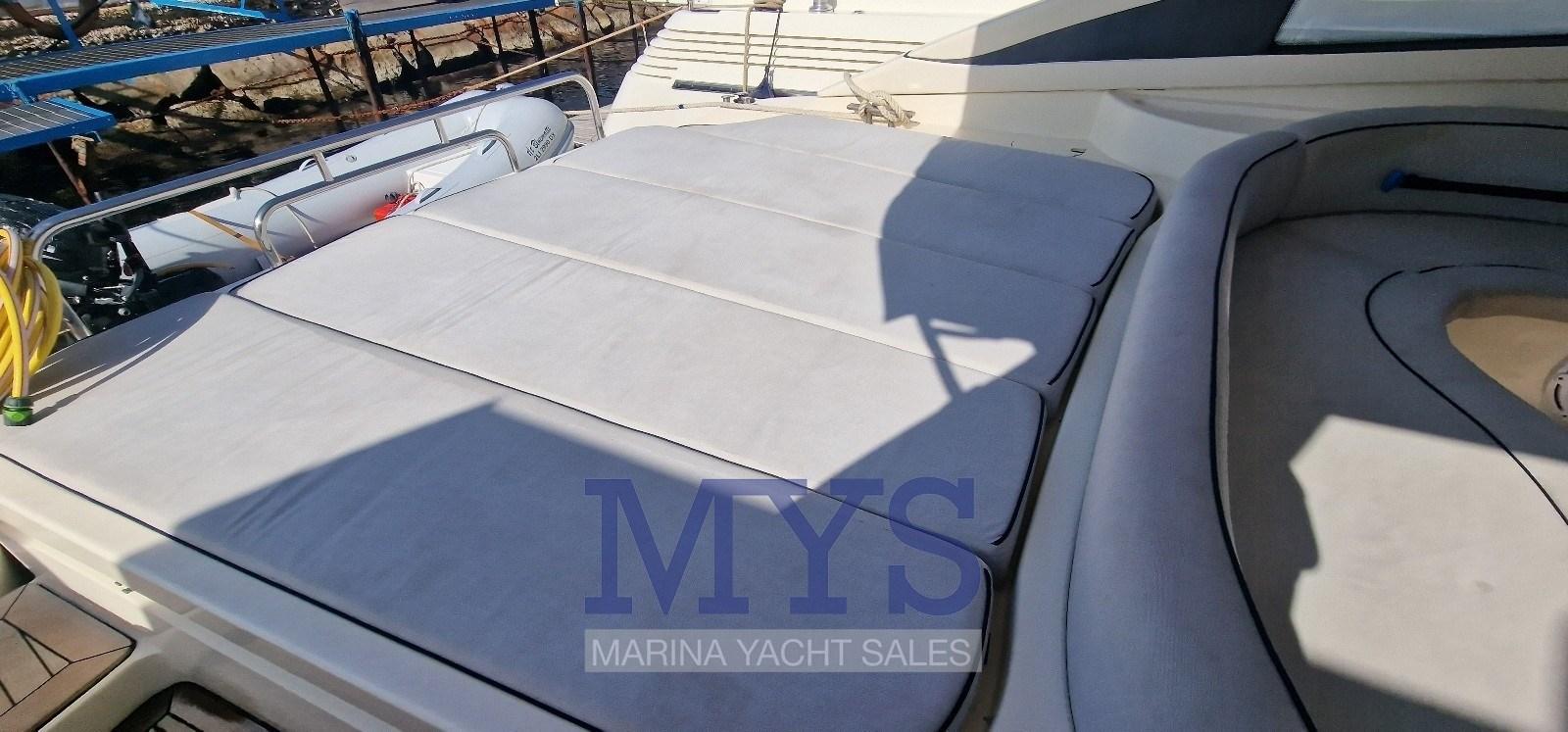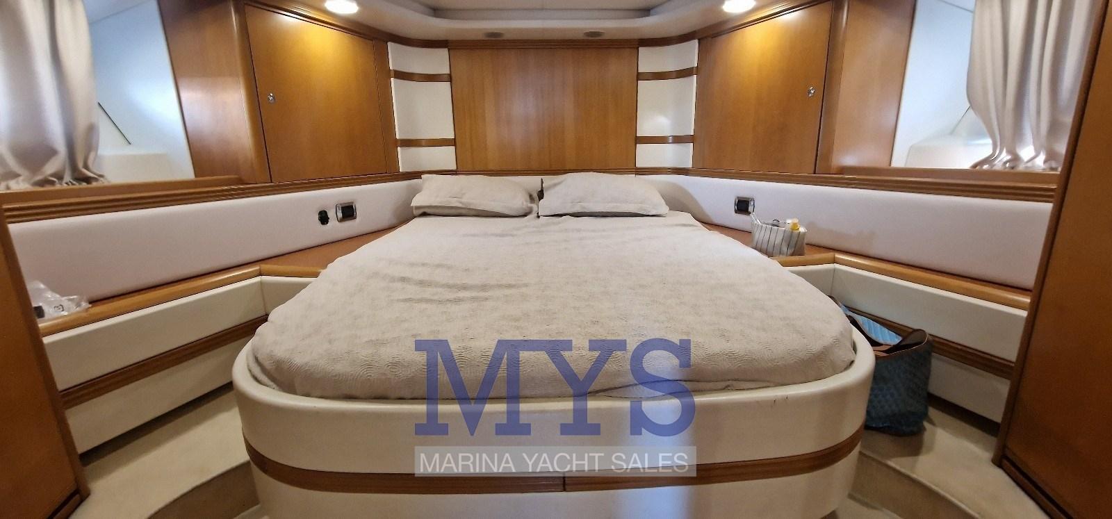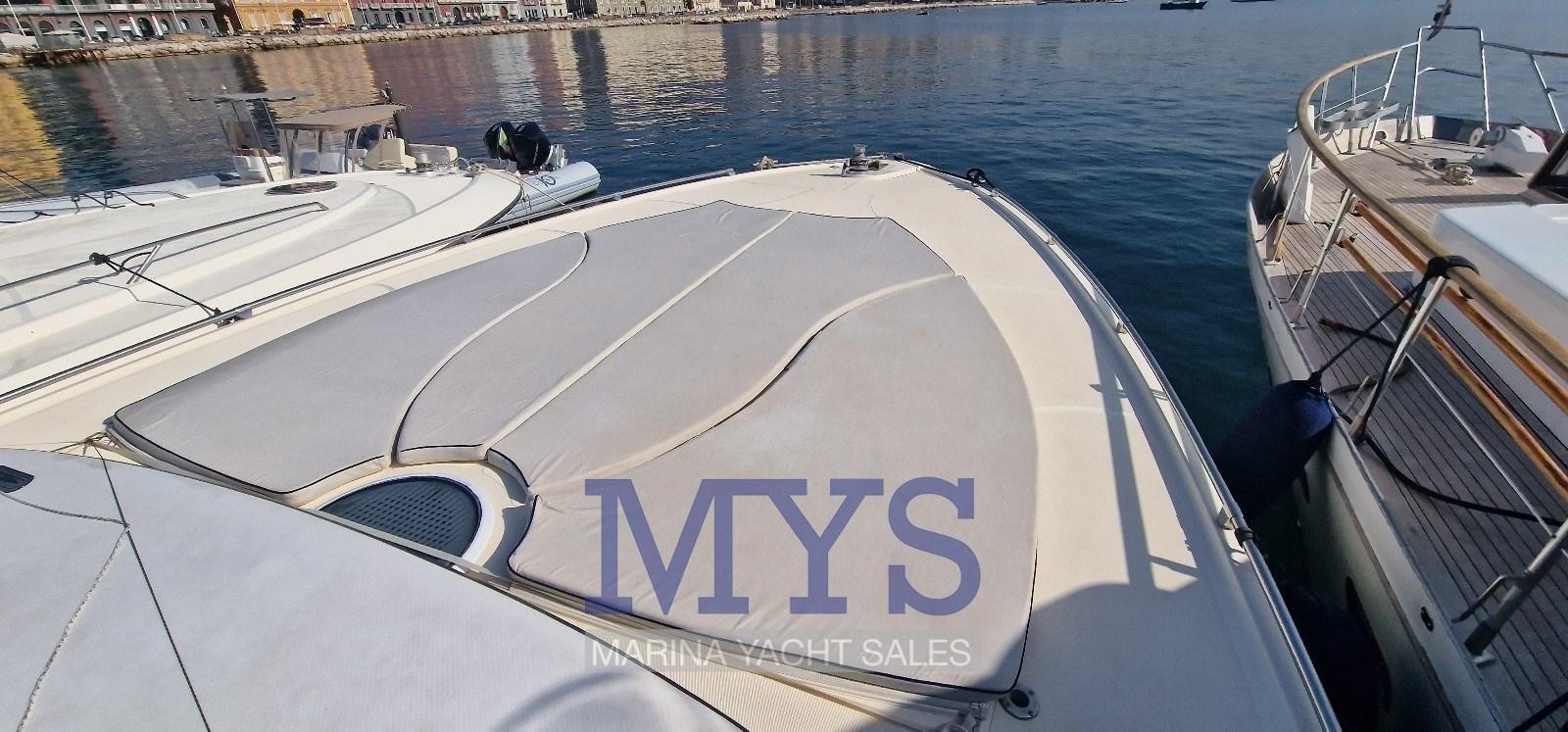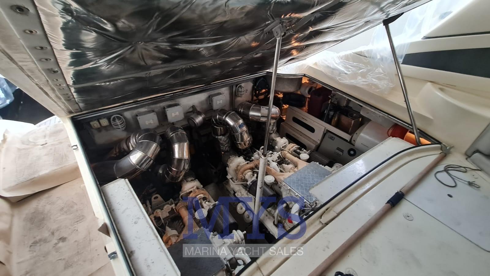 A pruavia del grande salone è disposta la cabina armatoriale con bagno privato. Verso poppa vi sono le 2 cabine ospiti e una seconda toilette. Posto di pilotaggio: sul lato di dritta del pozzetto, servito da divanetto a 2 posti. Plancia ergonomica con strumentazione motori, radiotelefono VHF, plotter con GPS, ecoscandaglio, bussola, pilota automatico con interfaccia GPS Zona carteggio: sui tavolini in pozzetto e nel salone interno Zona cucina: collocata nella zona mediana dell'imbarcazione, sul lato di dritta. Mobili base e pensili in legno pregiato; piastra cottura; microonde; mobile con frigo/freezer da 270 litri.