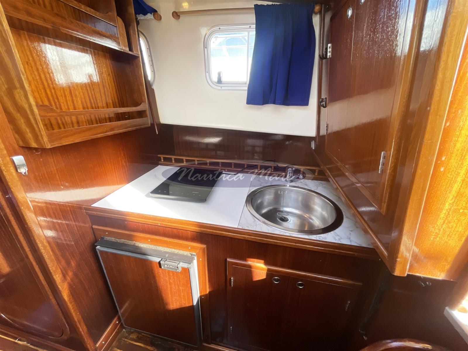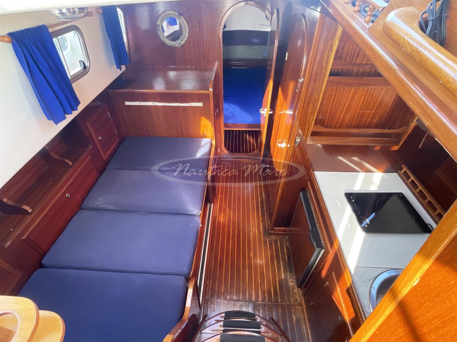 Imbarcazione tradizionale, tipica delle Isole Baleari, il Menorquin 45L in vendita è una comoda "casa galleggiante" che racchiude in solo 9 metri generosi spazi sia esterni che sottocoperta. Da poppa verso prua troviamo una comoda scaletta per la risalita dal mare con plancetta bagno ed una altrettanto comoda passerella pieghevole in acciaio e legno per lo sbarco/imbarco da terra. Il pozzetto con la poppa arrotondata ospita due sedute laterali complete di cuscinerie, protette da un grande tendalino parasole montato su arco in acciaio inox retrattile. Gli ampi camminamenti walk around laterali portano velocemente ed in totale sicurezza verso prua, verso il verricello con àncora e catena e verso l'ampia zona prendisole completa di cuscineria. Nel pozzetto, la grande porta in legno e vetri completamente apribile mette in comunicazione l'esterno con l'interno dell'imbarcazione. Gli interni sono ampi e luminosi, dal sapore classico, marino, con molto legno e cuscinerie blu. Il timone una vera e propria opera d'arte. I posti letto totali sono 4/5 di cui 2/3 nella cabina a V di prua, 2 nella dinette trasformabile. I due ambienti sono separati da una porta in legno. Anche il bagno è separato e dotato di doccia e lavandino, la cucina completa di lavello, frigorifero, fornello elettrico. La postazione di comando completa di comoda seduta ha al proprio fianco un divanetto per 2/3 ospiti. La strumentazione elettronica di navigazione è completa e moderna: Gps Raymarine Axiom 9 di ultima generazione, ecoscandaglio, radio vhf, pilota automatico, radar. Anche la strumentazione dei motori Yanmar è completa e funzionante. I 2 motori Yanmar turbo diesel in linea d'asse da 88 hp cadauno, con 1240 ore di funzionamento, sono ben curati e mantenuti. La velocità massima è di circa 10 nodi, la crociera 8,5. I consumi di gasolio sono molto bassi. L'autonomia generosa consente lunghe e confortevoli traversate senza sosta. Ne consigliamo la visita!