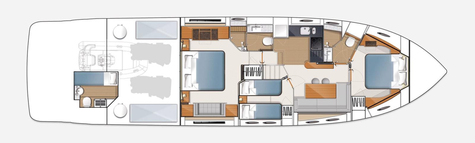 Acqua Calda, BBQ/ Grill, Boiler, Cassaforte, Impianto acque nere, Indicatore del serbatoio del carburante, Indicatore del Serbatoio dell’Acqua, Indicatore della pressione dell’olio nel motore, Prese interne 12v, Prese interne 220v, Telecamera (Poppa + sala macchine), WC marino elettrico.
