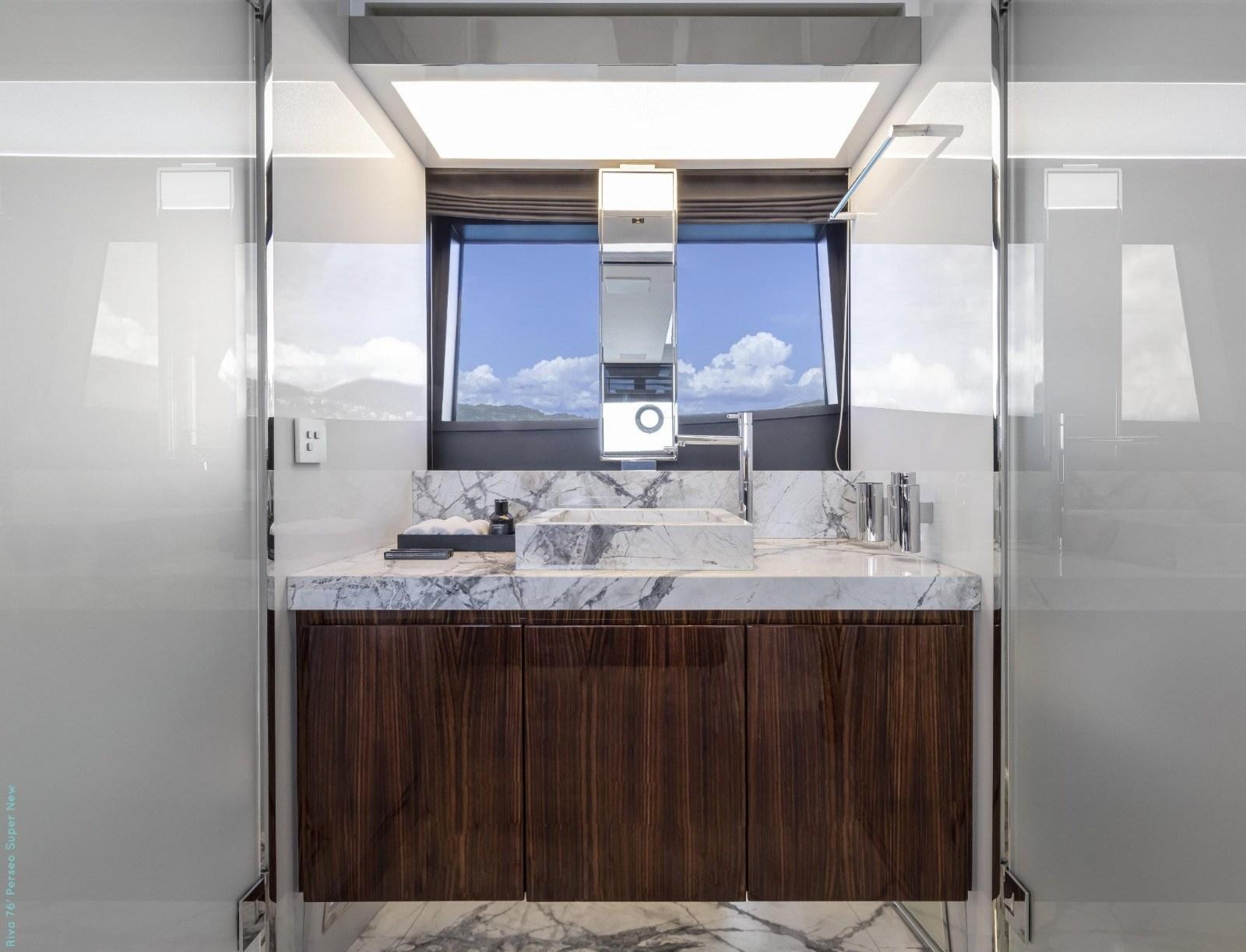 Il 76 Perseo unisce sportività e raffinatezza: le linee esterne filanti, le superfici vetrate generose, l’uso sapiente di materiali nobili (legno, acciaio, vetro) e finiture curate nei dettagli fanno emergere il dna “made in Italy” di Riva, inoltre gli spazi esterni, ponte, flybridge, pozzetto e area prendisole, offrono ambienti ideali per relax, aperitivi o momenti conviviali, rendendo l’imbarcazione perfetta sia per crociere di confort sia per escursioni di rappresentanza.