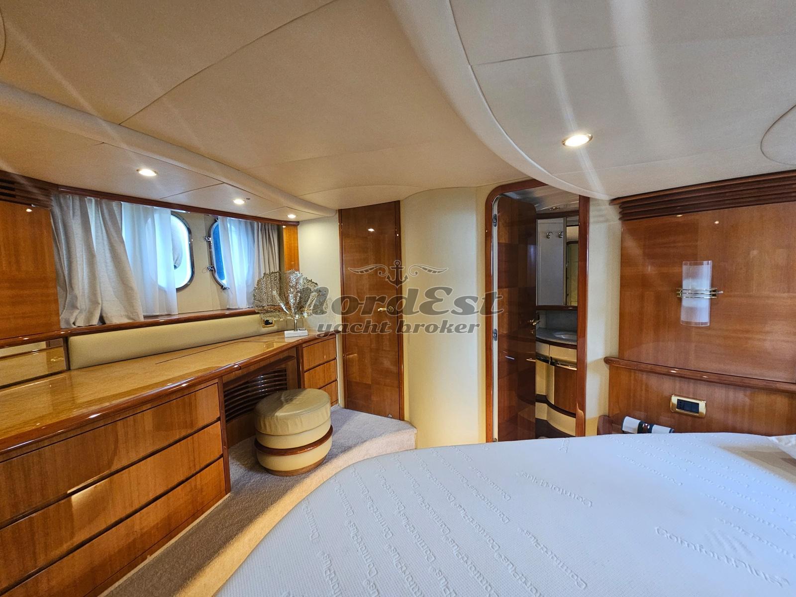 Contacatena - Faro orientabile - Angolo di barra - Autopilota - Ecoscandaglio - GPS/Plotter - Radar - VHF - Manette elettroniche - Stazione meteo - Antenna satellitare - Impianto TV - TV - Impianto stereo