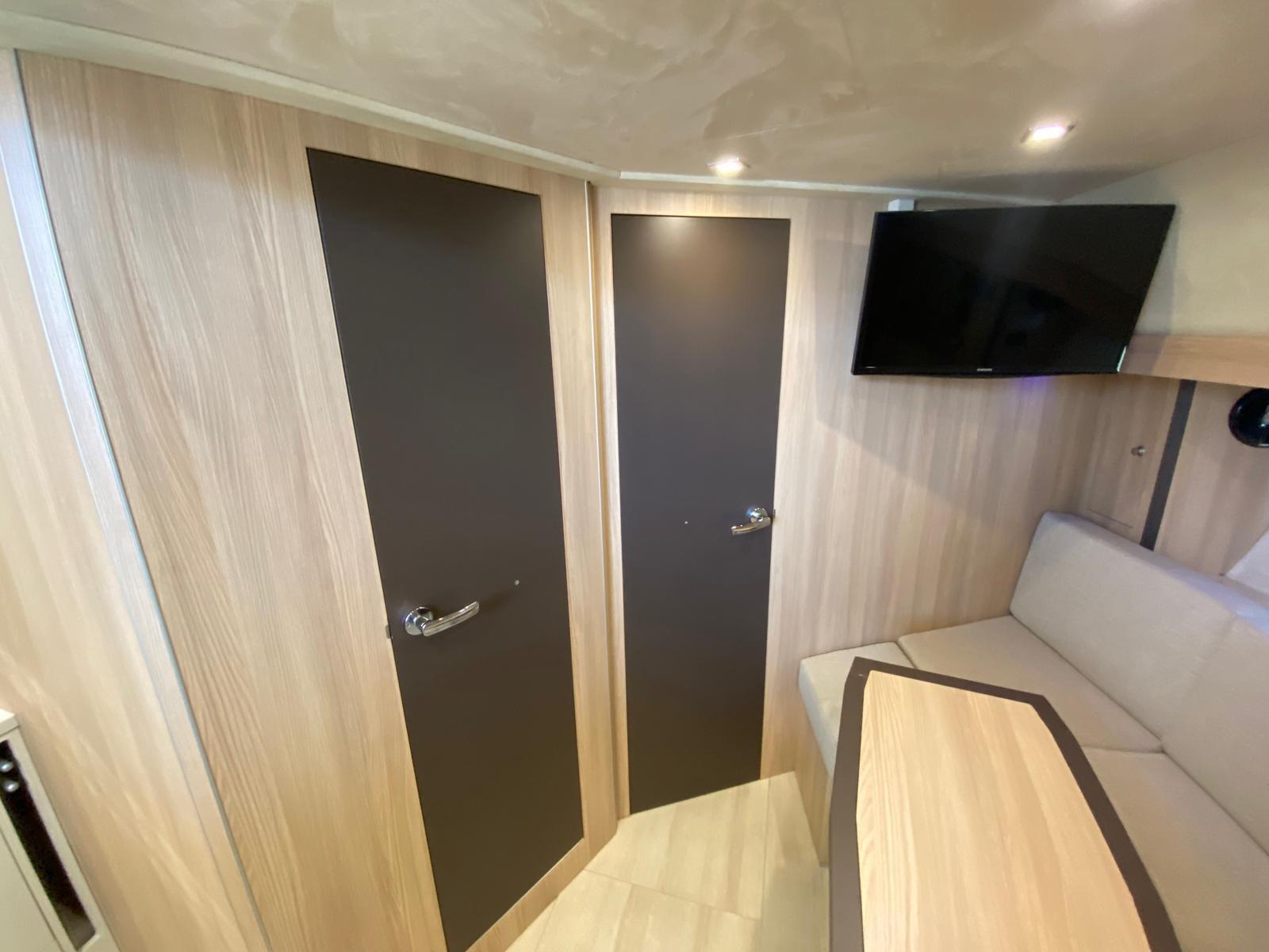 Interni di Lusso e Abitabilità: Sotto coperta, l'M38 HT sorprende per l'eccellente sfruttamento degli spazi. Dispone tipicamente di due cabine doppie (armatoriale a prua e ospiti a poppa) e un bagno, offrendo una privacy e un'abitabilità eccezionali per un 38 piedi. Le finiture sono di alta qualità, con legni pregiati e tessuti eleganti.