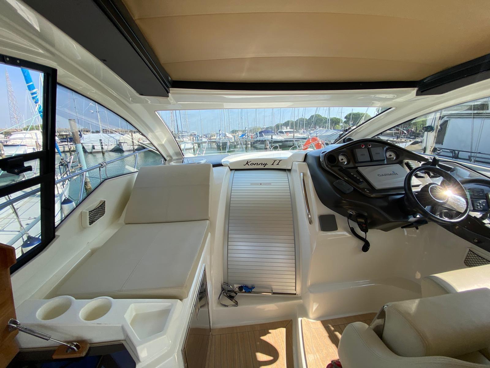 Angolo barra; Bussola; Comando motori elettronico; Computer di bordo; Contametri catena; Ecoscandaglio; GPS (Garmin Map 7412); Joystick; Luci di navigazione; Pilota automatico; Radio VHF; Allarme motore; Allarme sentina; Ancora (Catena maggiorata 60 metri); Batterie (Serie di batterie n.5 Nuove); Caricabatterie; Doccia esterna (A poppa e a prua); Elica di prua; Flap elettrici; Hard Top; Lavandino nel Pozzetto; Luci di Cortesia; Passerella; Pompa di Sentina; Presa 220V banchina; Salpa Ancora Elettrico; Scaletta da bagno, Selle per Tender; Tavolo Pozzetto; Tromba; Aria condizionata; Boiler; Clima reversibile; Indicatore del serbatoio del carburante; Indicatore del serbatoio dell'acqua; Indicatore della pressione dell'olio nel motore; Indicatore della temperatura del motore; Pavimento interno in legno; Prese interne 220V; WC marino elettrico; Altoparlanti; Impianto TV; Radio AM/FM; Stereo; TV; Cucina; Fornello (a gas sottocoperta); Frigorifero esterno; Frigorifero interno; Microonde; Piastra in vetroceramica (Esterna in pozzetto); Copripozzetto; Cuscineria completa; Oscuranti; Teli copri finestra.