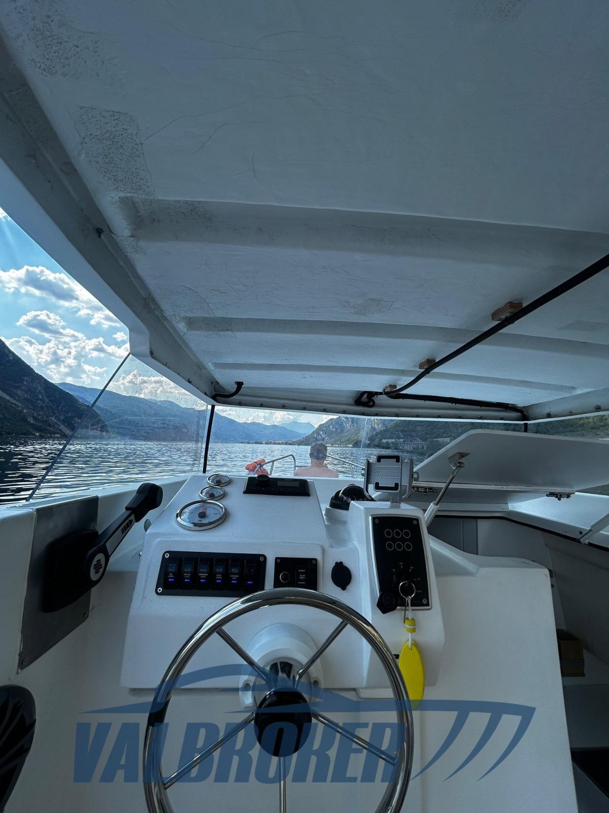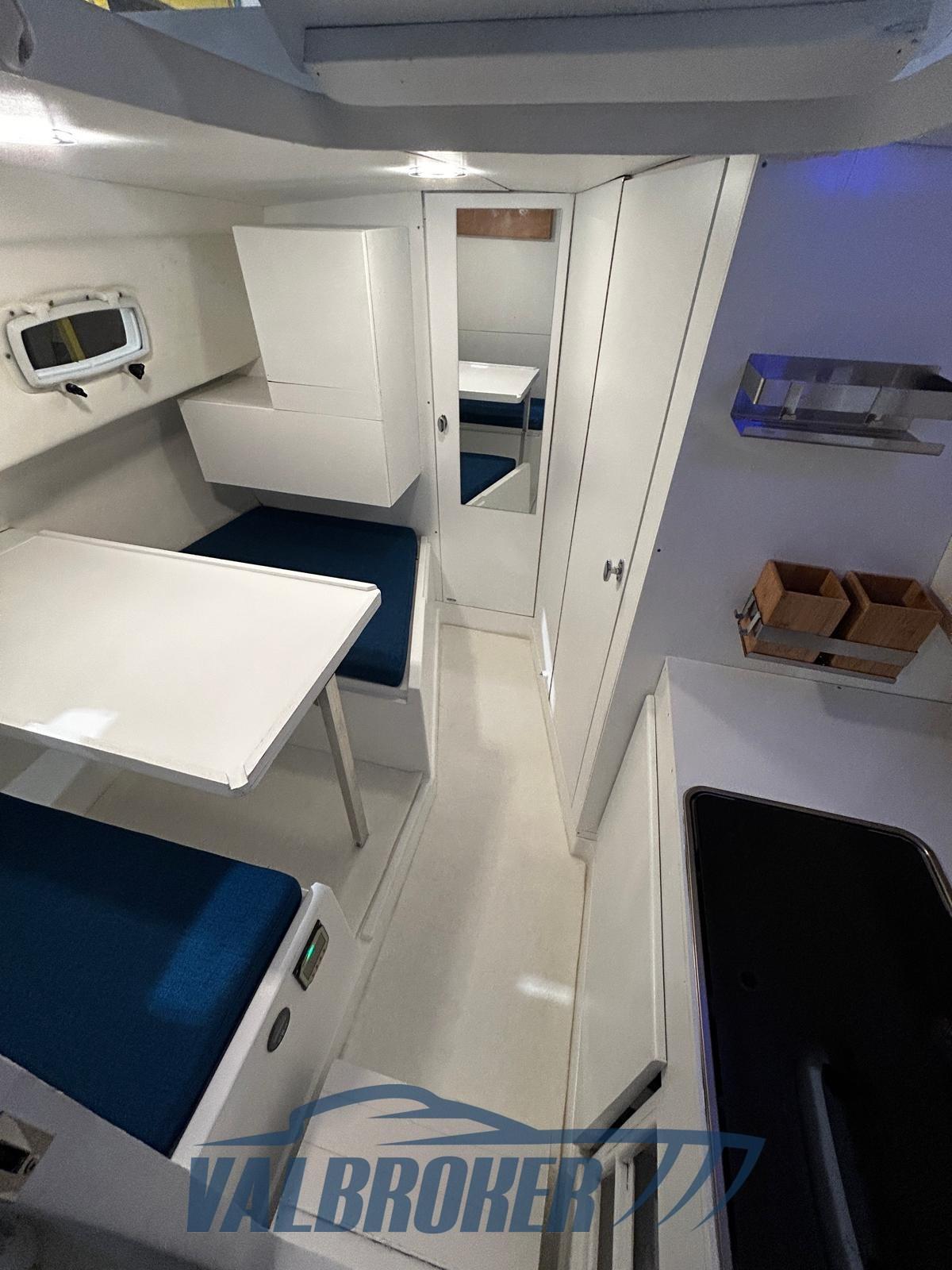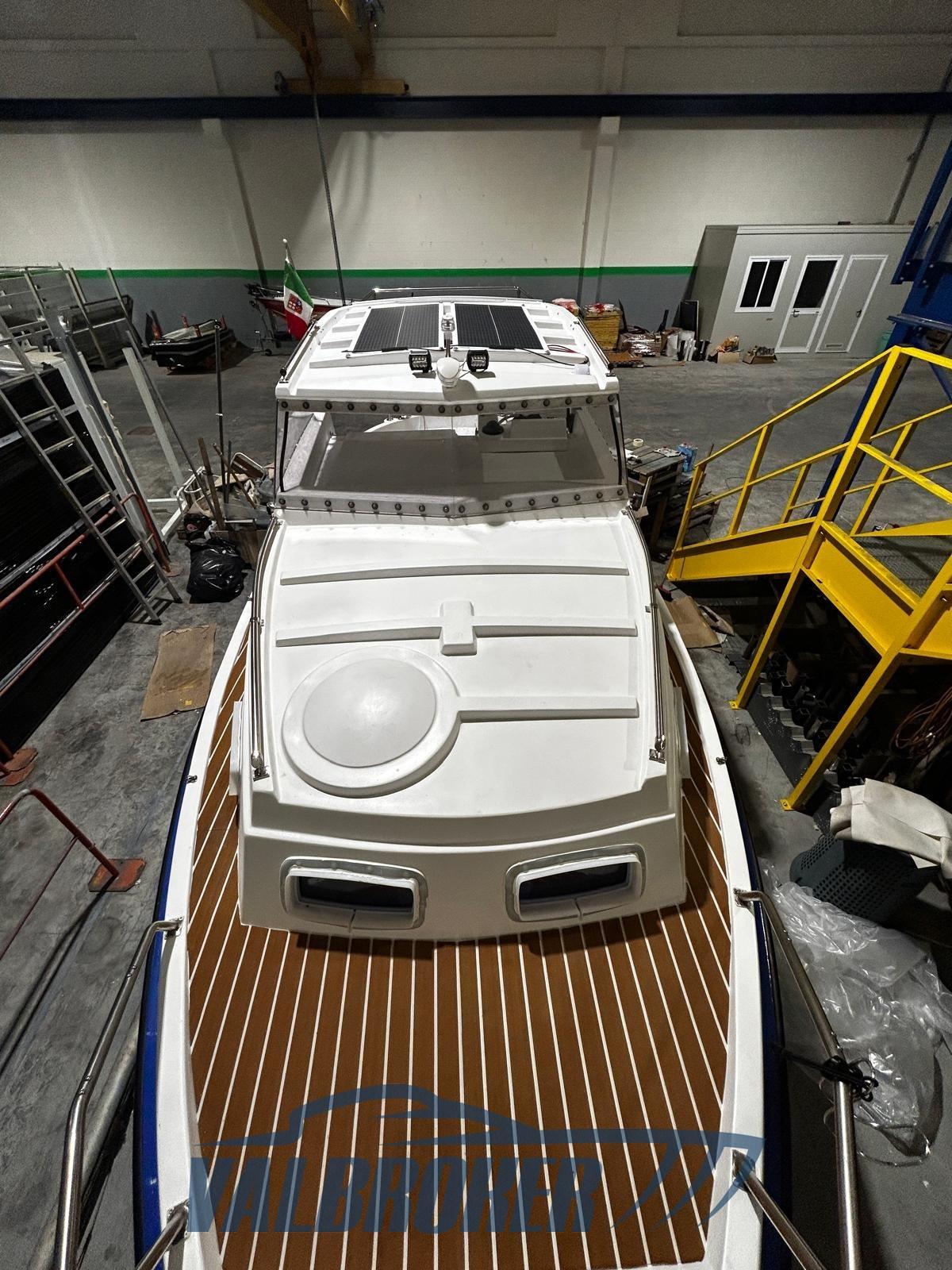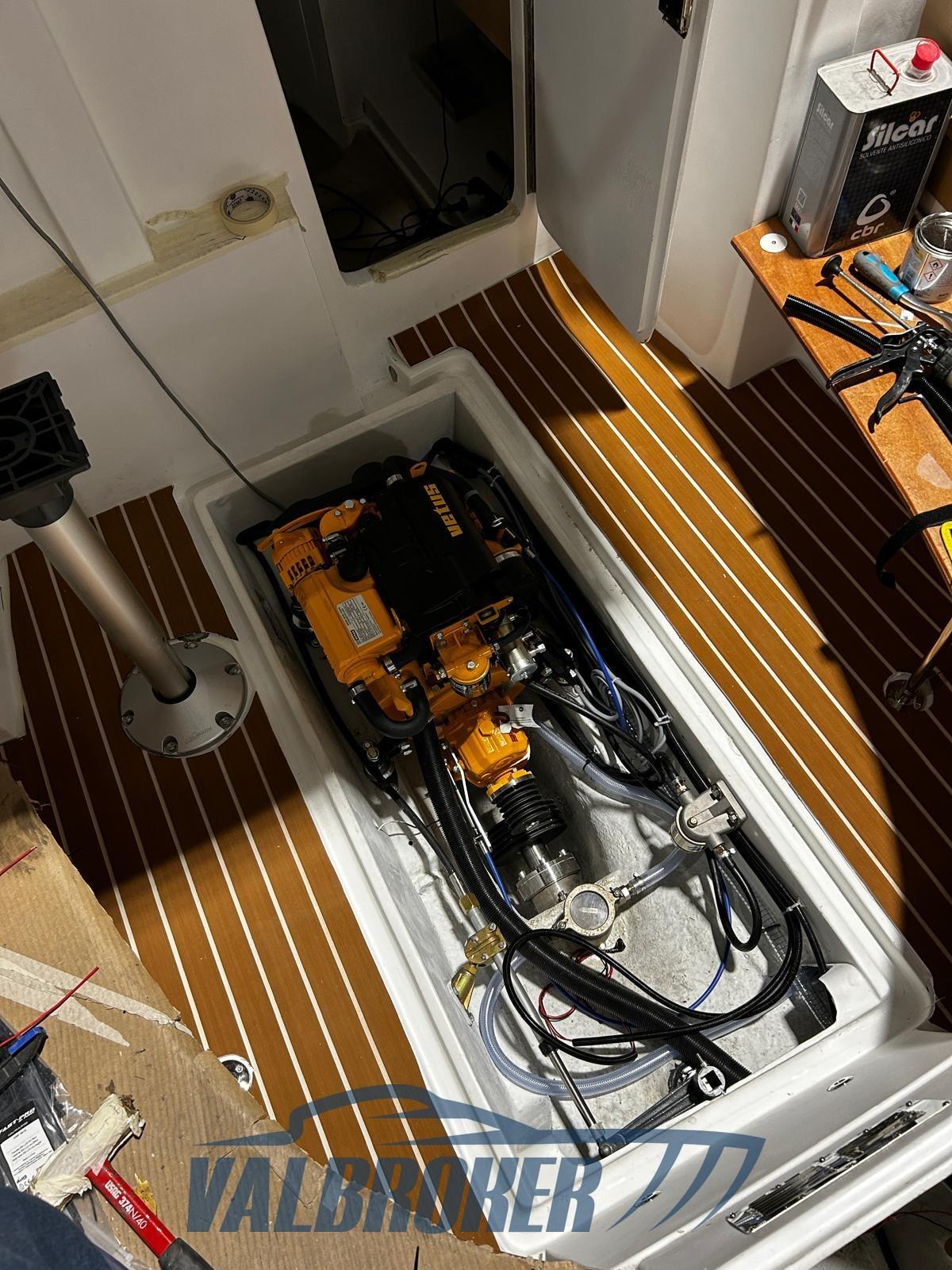 Lavori svolti tra settembre 2023 e luglio 2025: carena portata a zero e verniciata con pitture Stoppani Isofan Marine, nuovo bottazzo, nuova ferramenta in inox, 8 oblò nuovi e vetri parabrezza nuovi in policarbonato anti rottura. Supporto elica, albero, cuscinetti e guarnizioni nuovi. Impianto elettrico nuovo con due batterie (200Ah per servizi + 75Ah per motore), caricabatterie da banchina, doppio pannello solare 200W con regolatore, isolatore galvanico, doppio staccabatterie. Interni: tutti i legni (multistrato Okumé) sverniciati, carteggiati e ridipinti con pitture specifiche. Moquette interna nautica nuova. Prese a mare nuove.