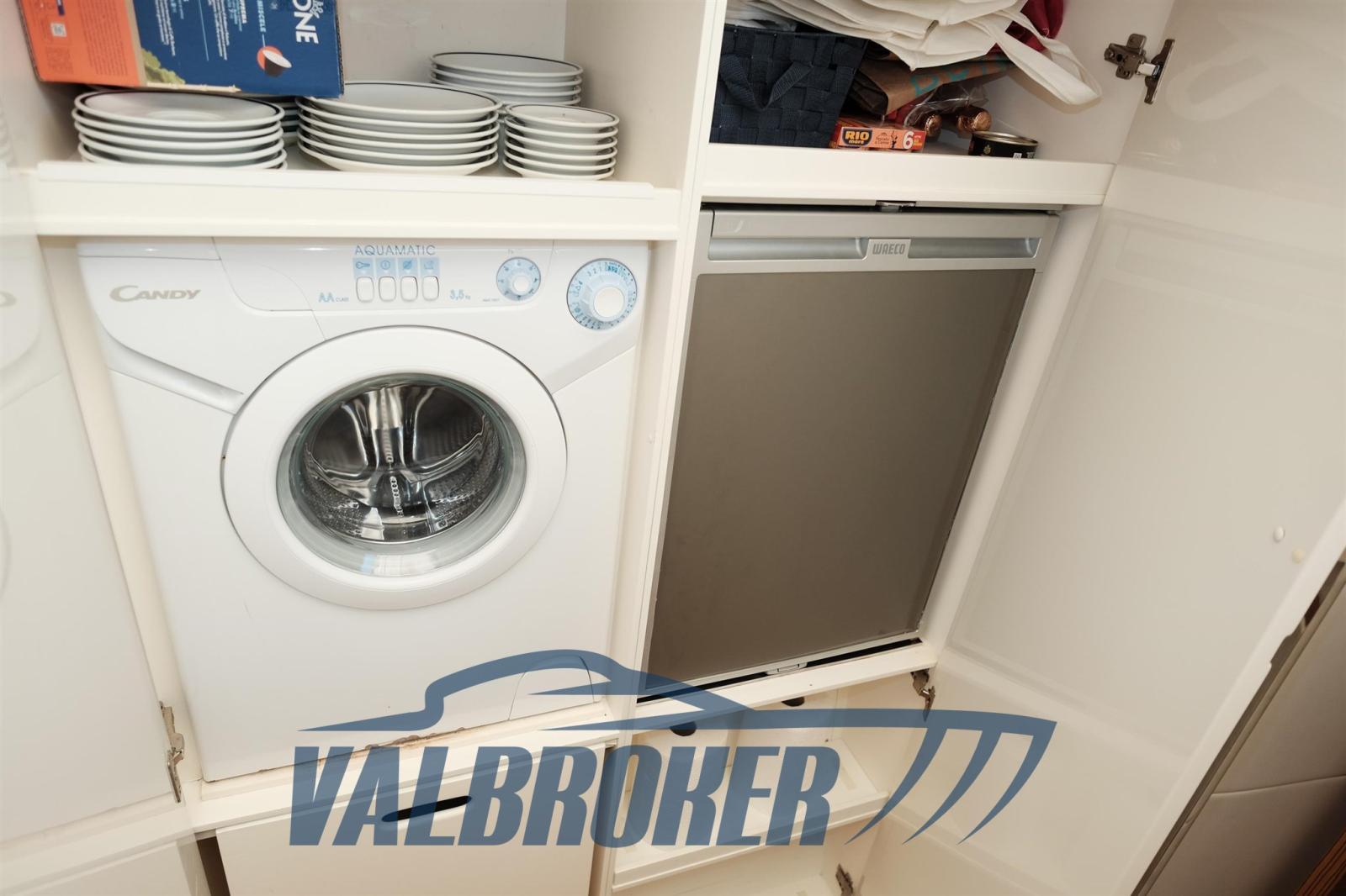 Cucina, Frigorifero interno (Waeco), Lavatrice (Candy), Microonde (Candy), Piastra elettrica (induzione Siemens a tre fuochi).