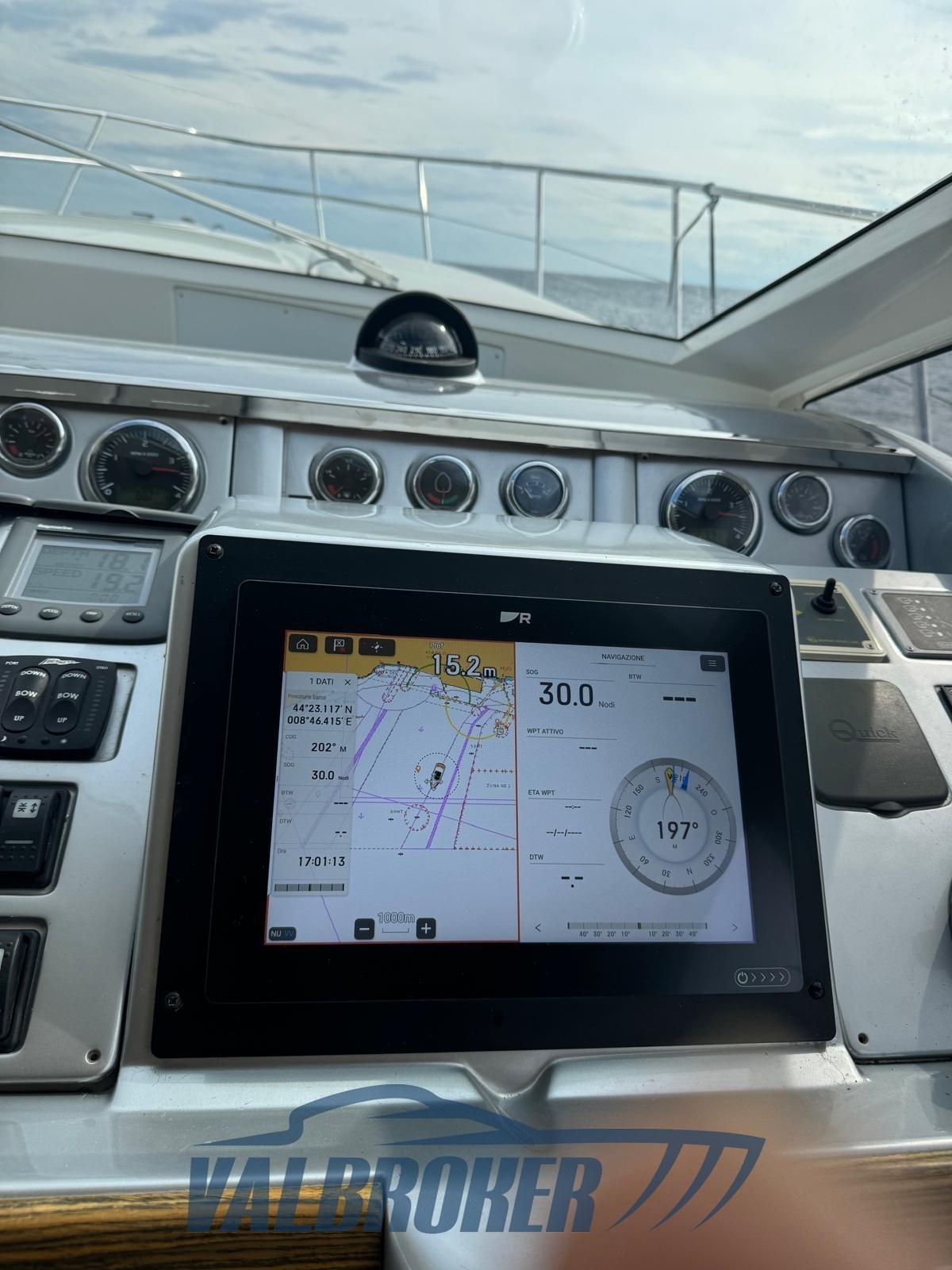 Contametri catena (Quick), Ecoscandaglio (Raymarine), GPS (2023 touchscreen), Pilota automatico (Raymarine), Radar (Raymarine Quantum 2023), Radio VHF (Ray 240E), Sedile Copilota.