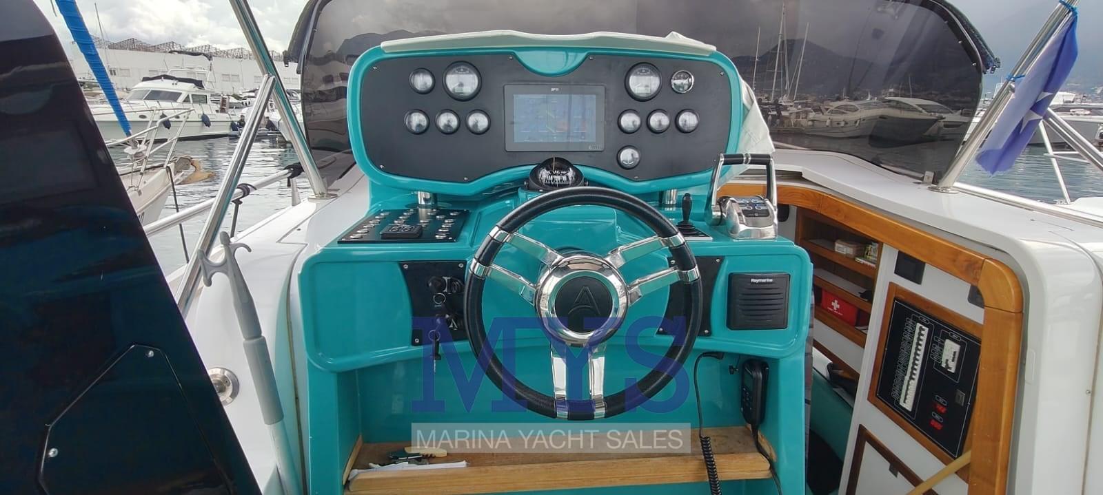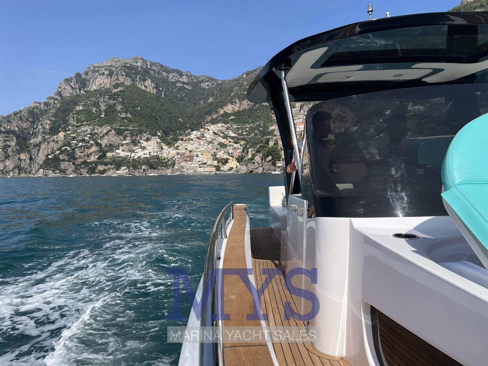 Allarme motore, Allarme sentina, Alternatore, Apertura Vano Motore Elettrica, Autoclave, Camminamenti laterali in teak, Cavo corrente di banchina, Corrimano di sicurezza, Doccia esterna, Flap elettrici, Indicatori Flaps, Lavandino nel Pozzetto, Luci di cortesia, Piattaforma, Pompa di sentina automatica, Ponte in teak, Pozzetto Teak, Presa 220V banchina, Salpa Ancore Elettrico, Scaletta da bagno, Tavolo pozzetto, Tromba, T-Top.
