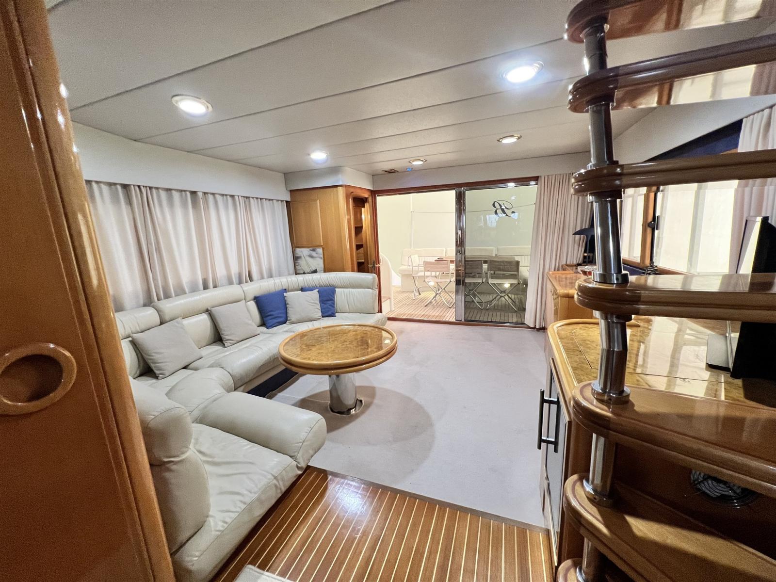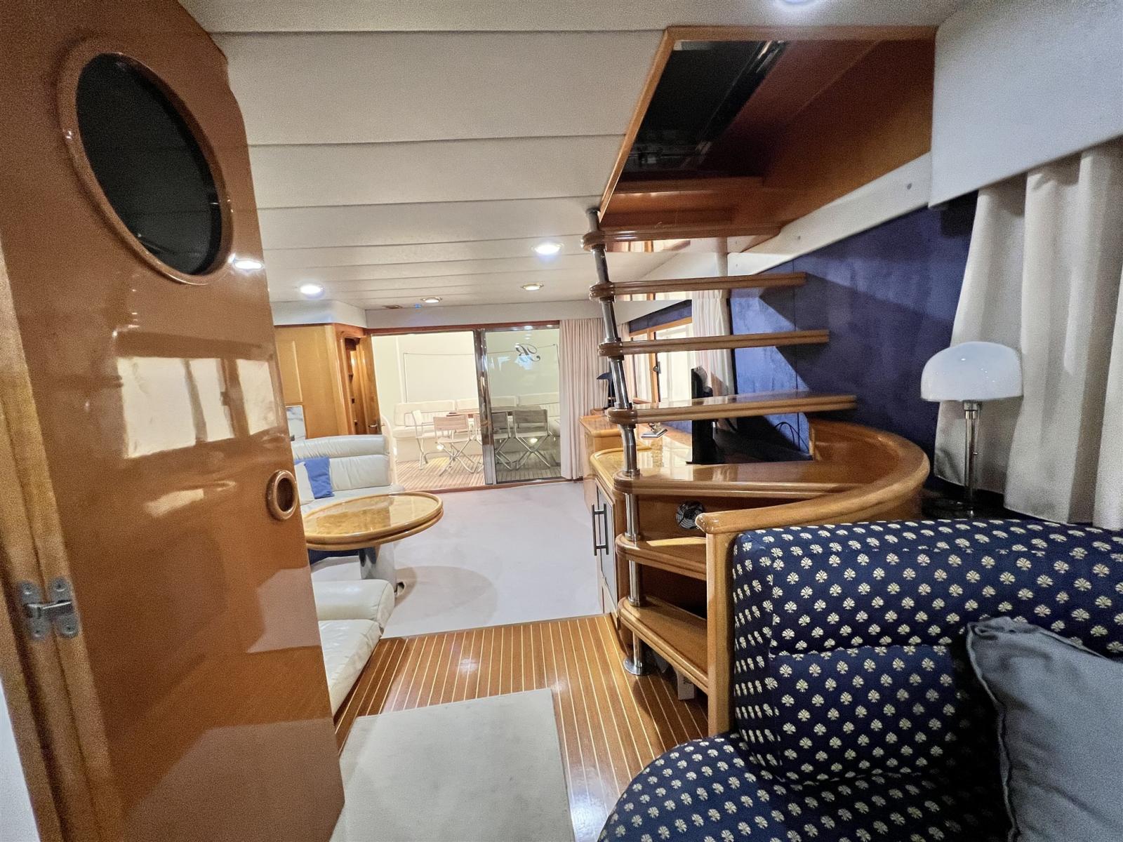 Allarme motore, 2 Asse di rispetto, Autoclave, Batterie (2022), Camminamenti laterali in teak, 2 Caricabatterie (2022), Doccia esterna, Elica di poppa - stern thruster (revisionata), Elica di prua - bow thruster (revisionata), Faro orientabile, Flap idraulici, Impianto antincendio, Indicatori Flaps (con impianto nuovo 2022), Luci di cortesia, Passerella (telescopica), Piattaforma, Pompa di sentina automatica, Pompa di sentina manuale, Pozzetto Teak, Presa 220V banchina, 2 Raddrizzatore (2022), Rollbar (con fari nuovi), Salpa Ancore Elettrico (revisionato con catena nuova), Scaletta da bagno, Tavolo pozzetto, Tender, 3 Winch.
