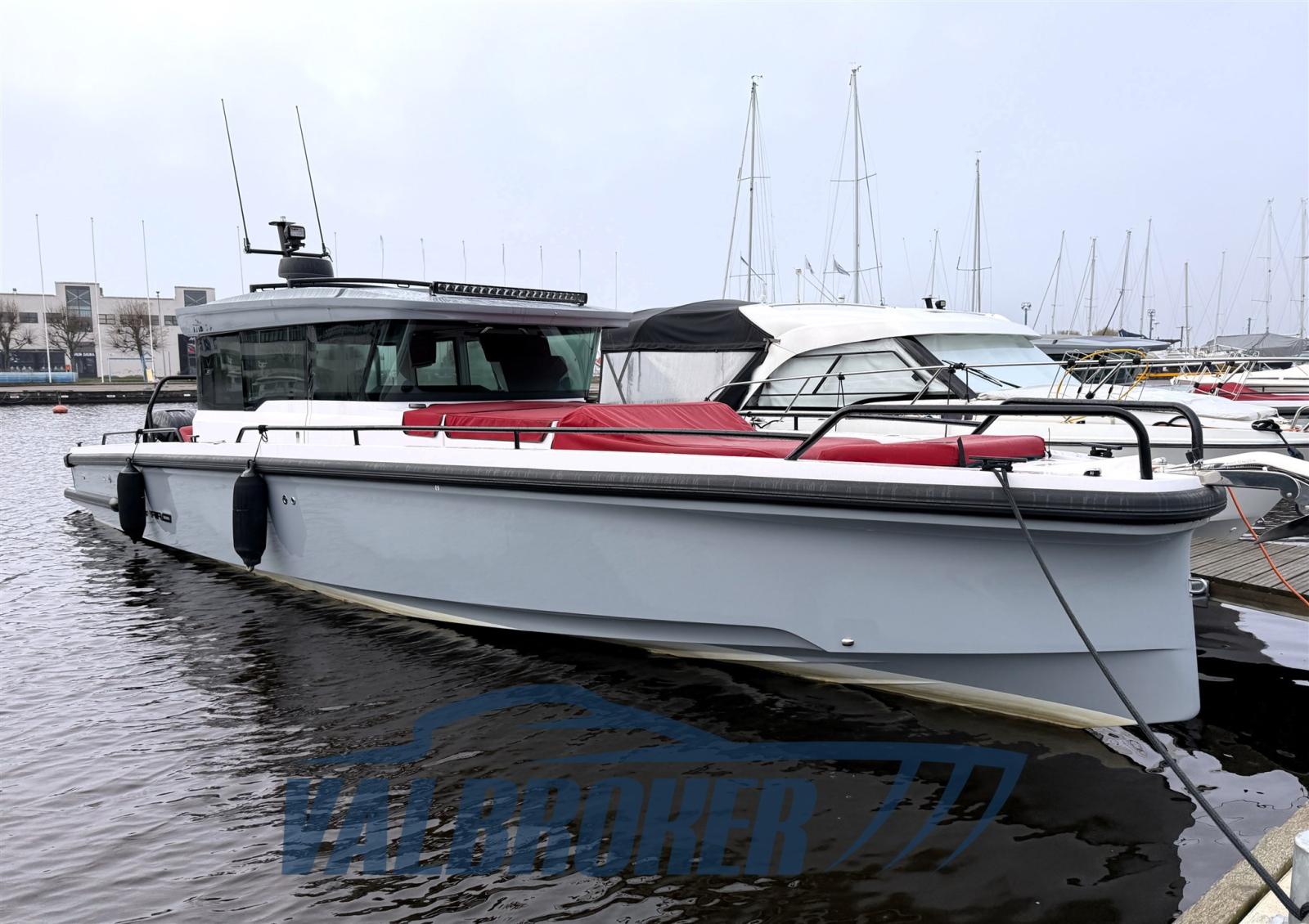 Axopar 37 Cross Cabin, due cabine doppie e un bagno. 2x350 HP Mercury !! Elica di prua, riscaldamento Webasto. Rimessata al coperto d'inverno.