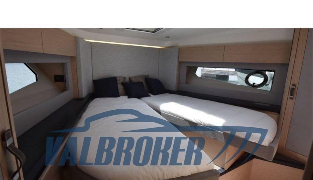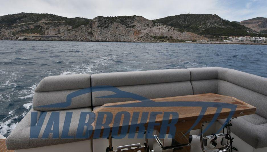 8 Batterie, Colorazione speciale (scafo grigio antracite), Luci subacquee, Passerella (Opacmare, idraulica), Piattaforma (idraulica con telecomando), Presa acqua banchina, Rollbar (grigio antracite), Scaletta da bagno, Stabilizzatori (Seakeeper 6), Tavolo pozzetto (elettrico).