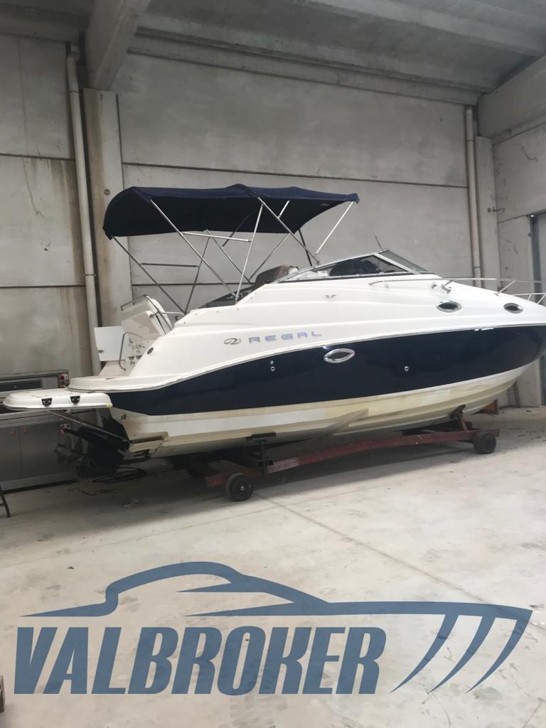 Cantiere americano, Regal Marine 2665, motorizzato 1 x 320 Hp - Mercruiser 6,2 V8 Benzina. Barca perfetta per uscite giornaliere o campeggio nautico in confort. Pratica e comoda per sport acquatici. Cabinetta a poppa, dinette trasformabile, bagno e cucina. Plancetta estesa.