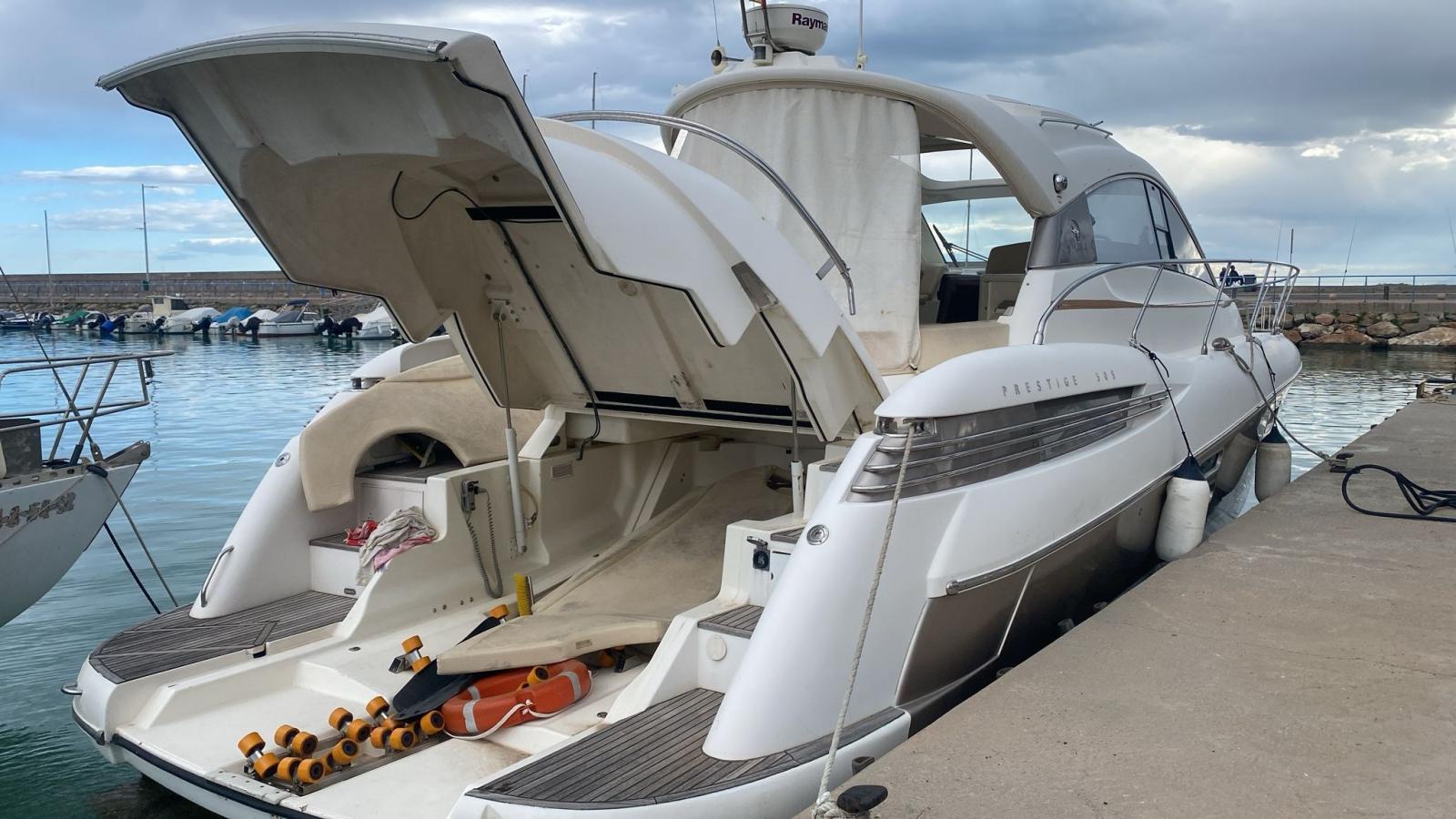 Allarme motore, Allarme sentina, Alternatore, Apertura Vano Motore Elettrica, Autoclave, Colorazione speciale, Doccia esterna, Faro orientabile, Flap idraulici, Garage per tender, Hard top, Impianto antincendio, Indicatori Flaps, Lavaggio catena, Lavandino nel Pozzetto, Luci di cortesia, Luci subacquee, Parabordi, Passerella (Idraulica Besenzoni), Piattaforma, Pompa di sentina automatica, Pompa di sentina manuale, Pompa per Acqua di Mare, Pozzetto Teak, Presa 220V banchina, Presa acqua banchina, Rollbar, Salpa Ancore Elettrico, Scaletta da bagno, Sistema Depurazione acque nere, Tavolo pozzetto, Tavolo Salone Abbattibile, Tender, Tromba, Winch, Winch tonneggio di poppa.