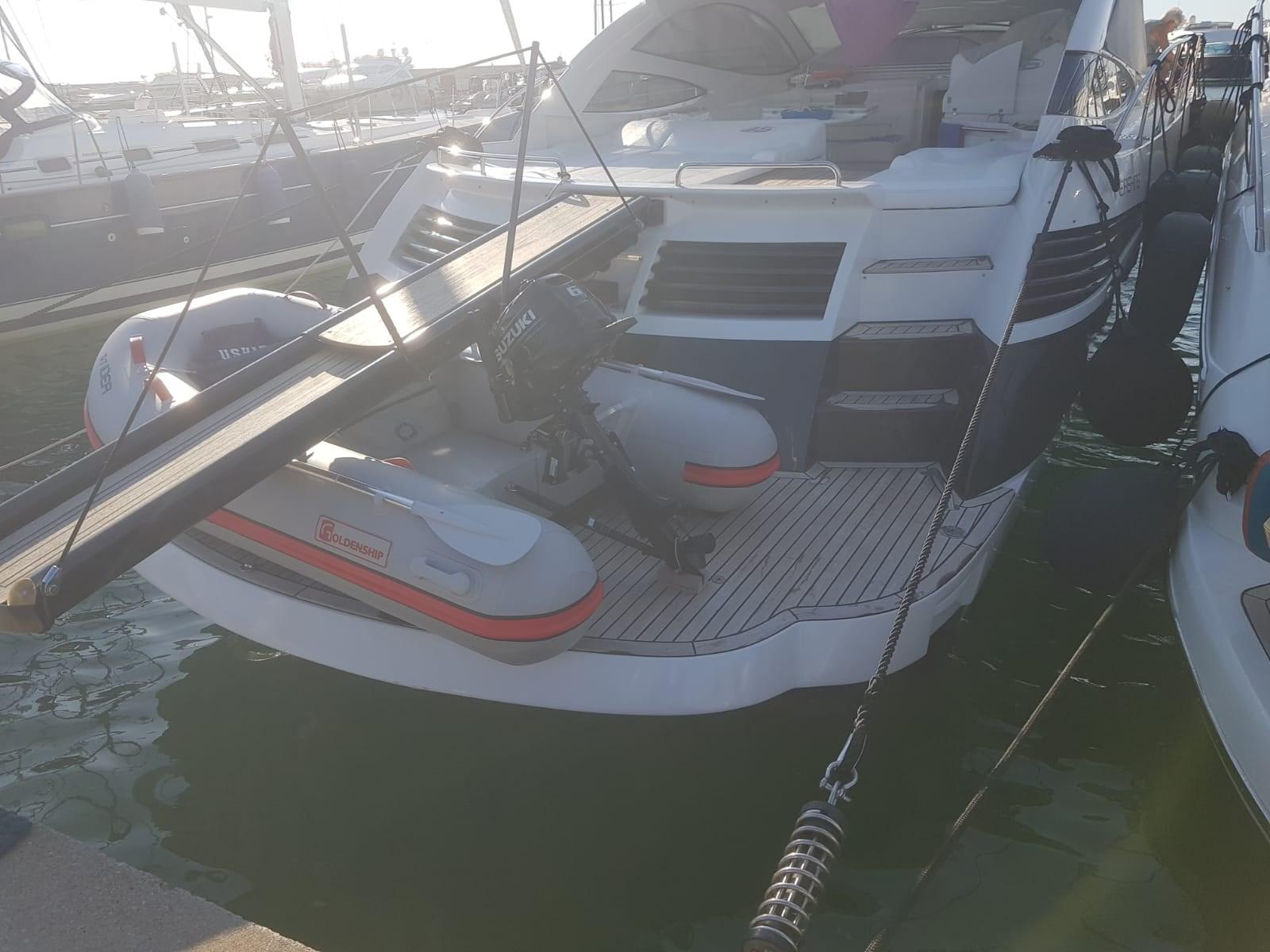 Allarme motore, Allarme sentina, Autoclave, Doccia esterna, Flap idraulici, Hard top, Impianto antincendio, Lavaggio catena, Lavandino nel Pozzetto, Luci di cortesia, Luci subacquee, Passerella, Piattaforma, Pompa di sentina automatica, Pompa di sentina manuale, Pozzetto Teak, Presa 220V banchina, Salpa Ancore Elettrico, Scaletta da bagno, Tavolo pozzetto, Tender, Tromba.