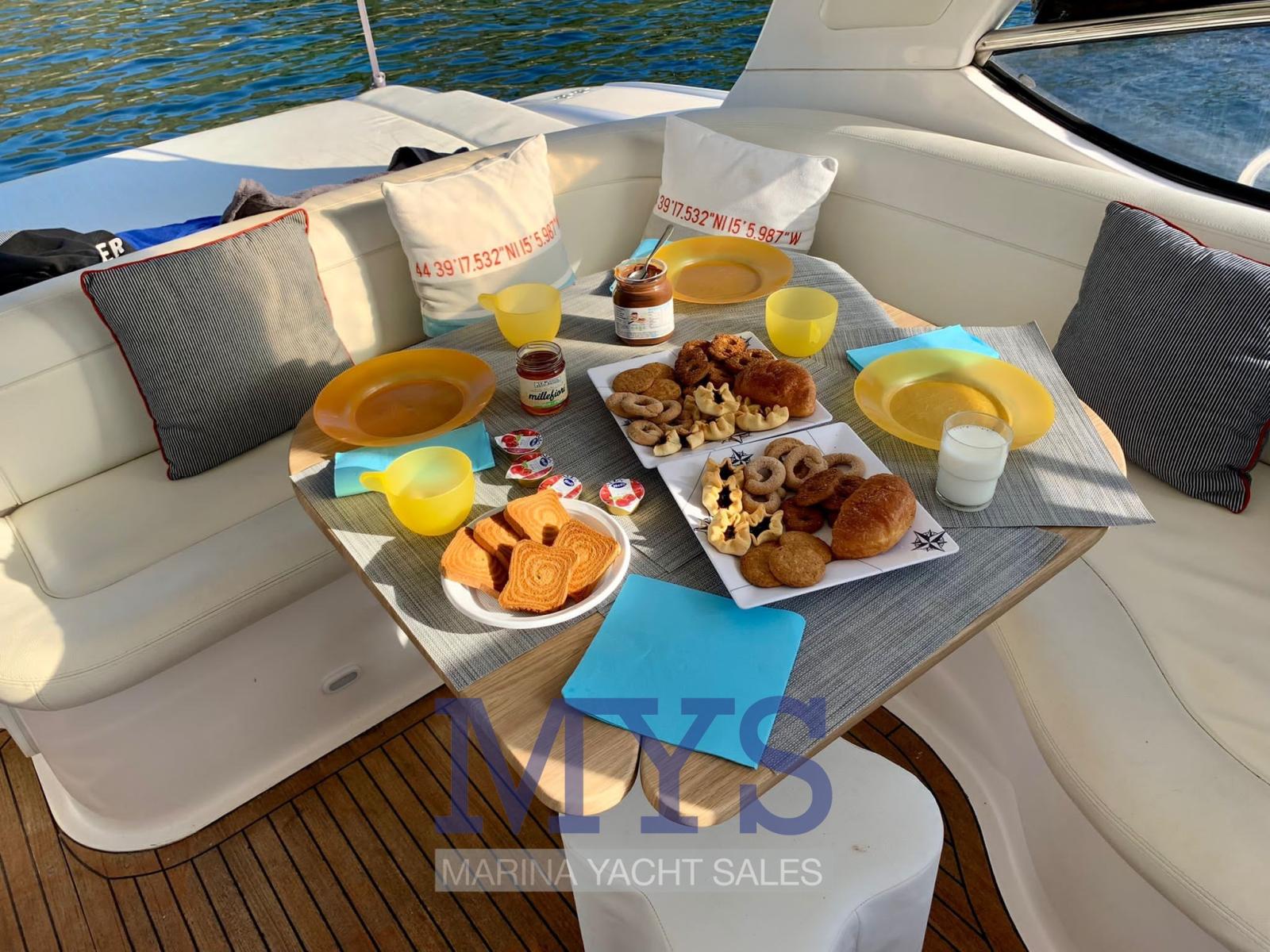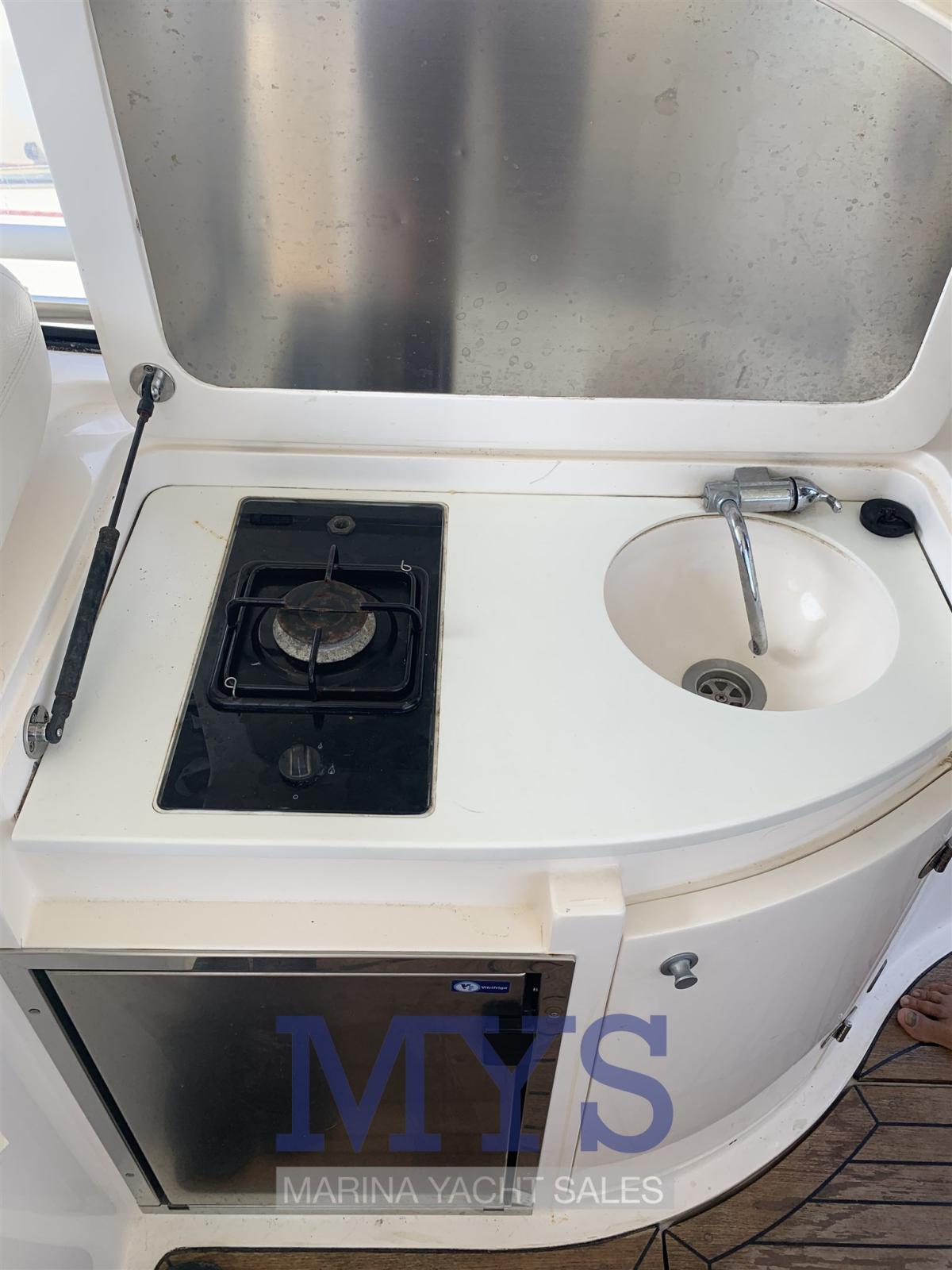 Allarme motore, Apertura Vano Motore Elettrica, Autoclave, Colorazione speciale, Doccia esterna, Flap idraulici, Impianto antincendio, Indicatori Flaps, Luci di cortesia, Luci subacquee, Passerella (A SCOMPARSA), Piattaforma, Pompa di sentina automatica, Pozzetto Teak, Presa 220V banchina, Raddrizzatore, Rollbar, Salpa Ancore Elettrico, Scaletta da bagno, Tavolo pozzetto, Tromba.