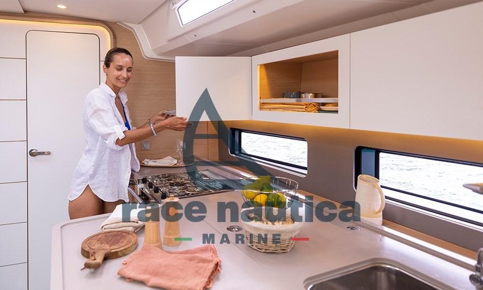 Randa full batten, Scotta randa sulla tuga con cime (no trasto), 2 winches sulla tuga con organizer e stoppers, Delfiniera di prua, Sistema presa continua terzaroli dal pozzetto, Salpaancore 1000W con comando remoto, Lazy Bag, Lazy Jack, Vang rigido, Ambiance Signature, Supplemento per Motore 57 Yanmar HP Sail Drive, Elica di prua a tunnel, 2 Winches T45 sul passaventi, Rotaia Genoa con regolazione dal pozzetto, Genoa in Dacron al posto del fiocco autovirante, Attrezzatura per Gennaker o Code 0 (senza vela), Scotta randa alla tedesca, 1 ripetitore Triton "2" a sinistra, 1 Schermo GPS Zeus SR 10 a destra, Pilota automatico, VHF V20S, Electronic Cruising Pack, Preparazione scafo + Antivegetativa di colore nero o bianco su richiesta, Winch elettrico T45 unitario sulla tuga, 2 oblò apribili aggiuntivi cabina di poppa lato pozzetto, Sprayhood con tienti bene, Bimini, Kit ancora 20kg + 30mt di catena, 6 parabordi, 3 cime d'ormeggio, Differenza di tutta la catena 50mt al posto della cima, Interni STD, Piastra a gas Babebue nella panca di pozzetto + lavello, Secondo serbatoio addizionale acqua dolce 180l non compatibile con il dissalatore.