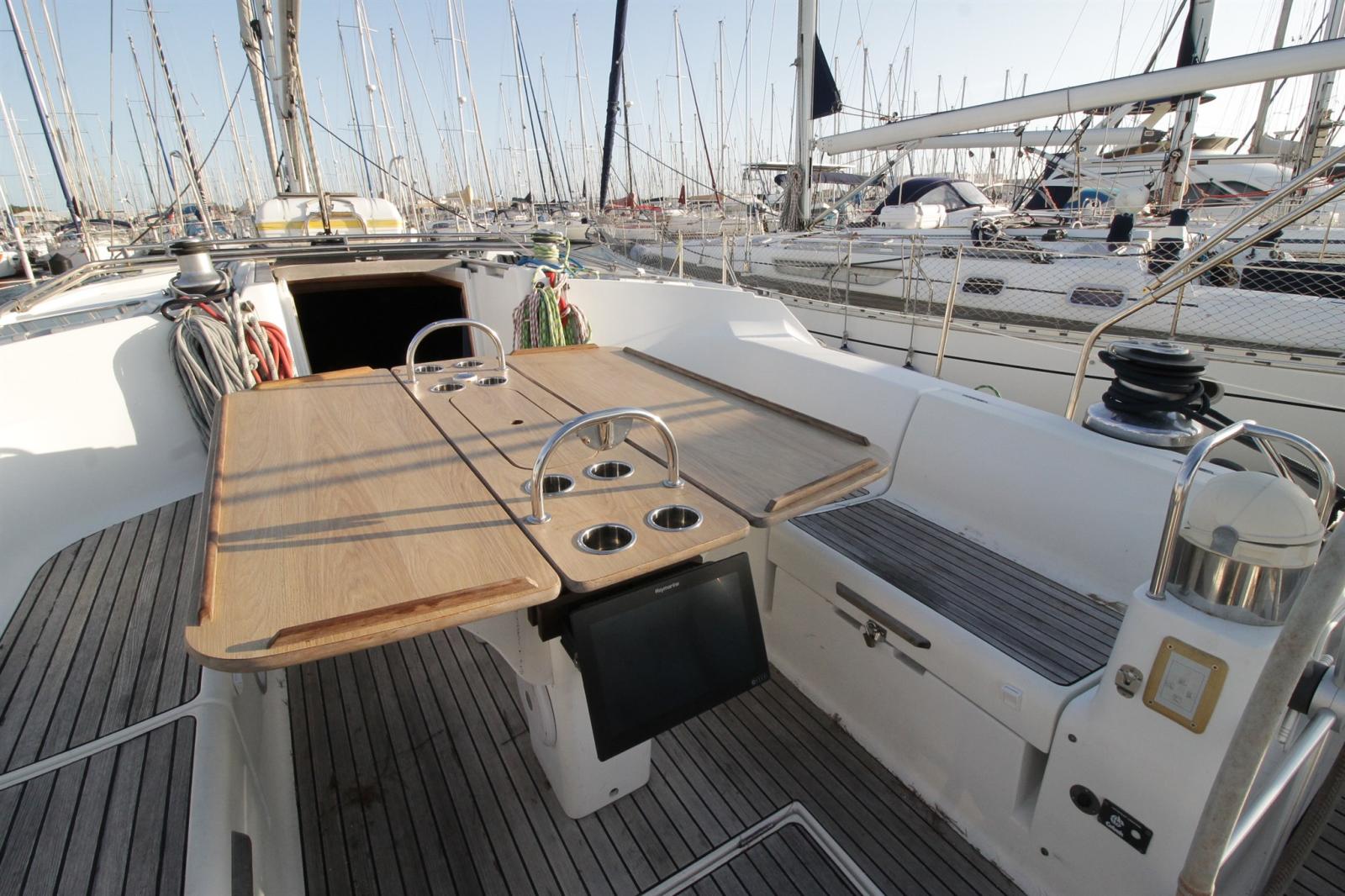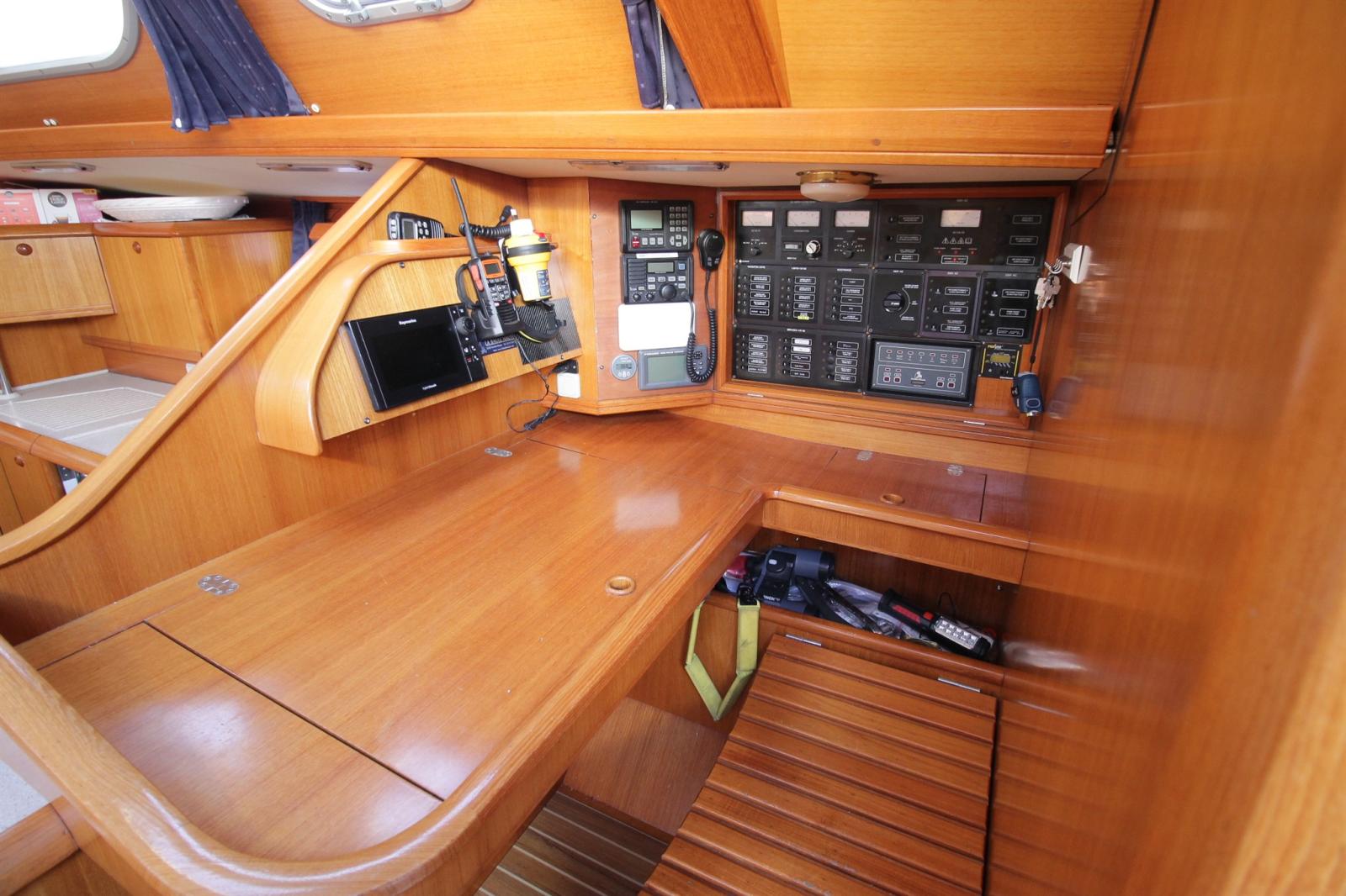 AIS (CLASSE B Raymarine 7000 (émetteur, recepteur)), 2 Bussola, Contamiglia (sur lecteur de carte), DSC vhf (HX210 STANDARD HORIZON avec retour cockpit), Luci di navigazione (LED), Pilota automatico (remplacé : raymarine EV 400 avec deux pupitres P70S), 2 Plotter (Raymarine Hybrid Touch), Radio VHF (portable), Sonar (sur lecteur de carte), Stazione vento (Raymarine I60S).