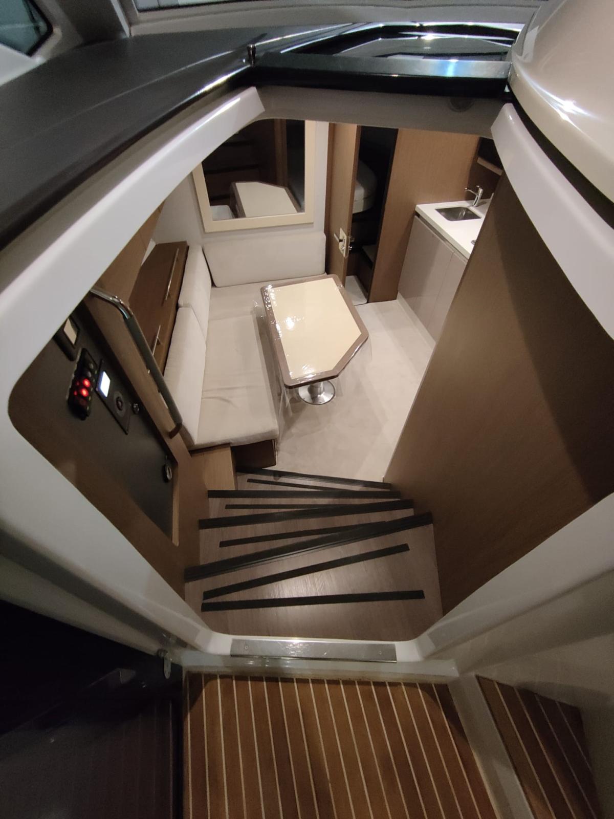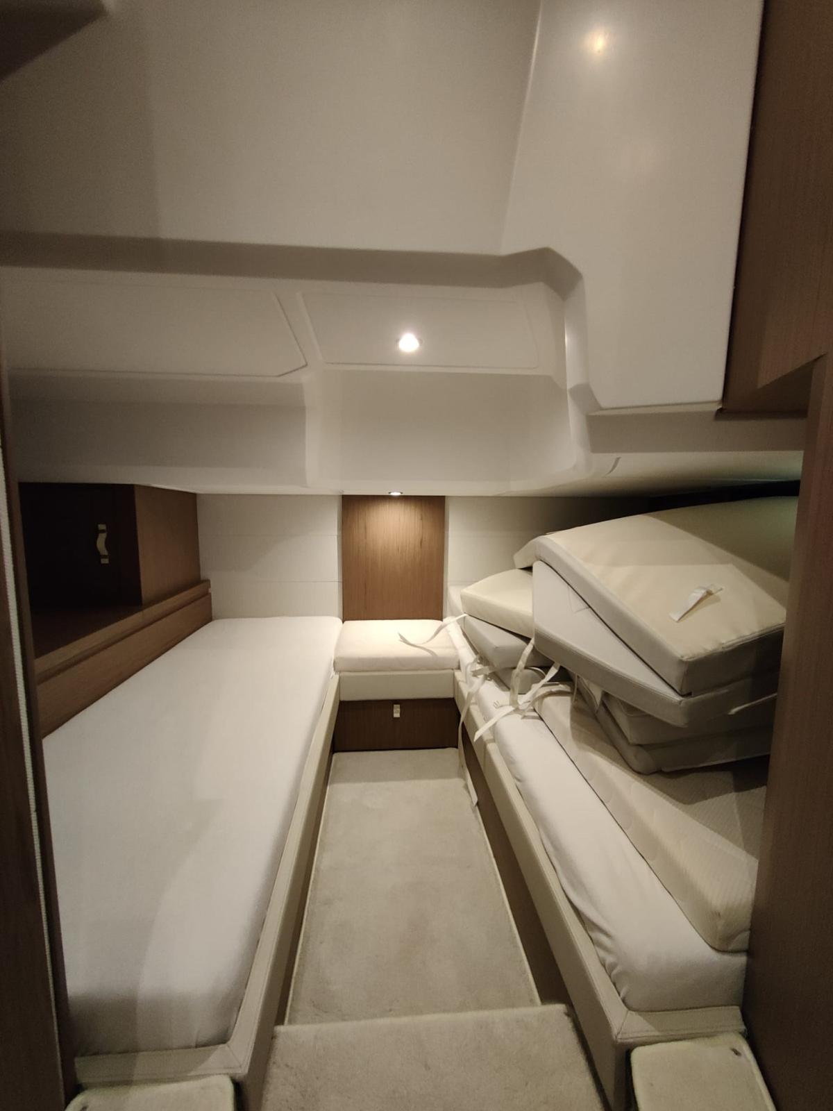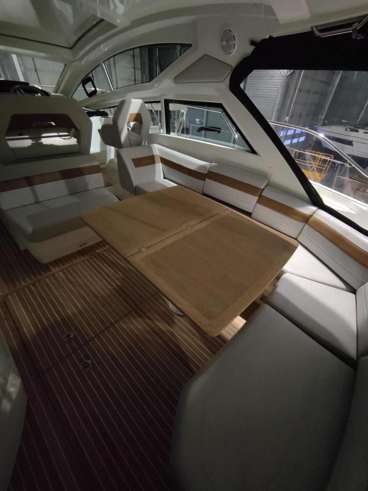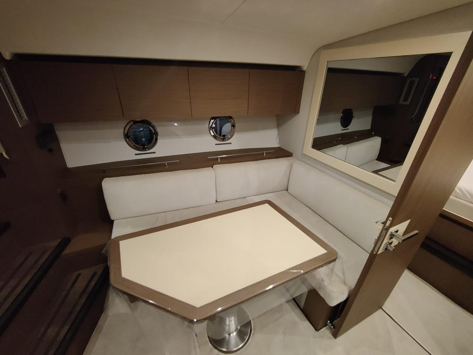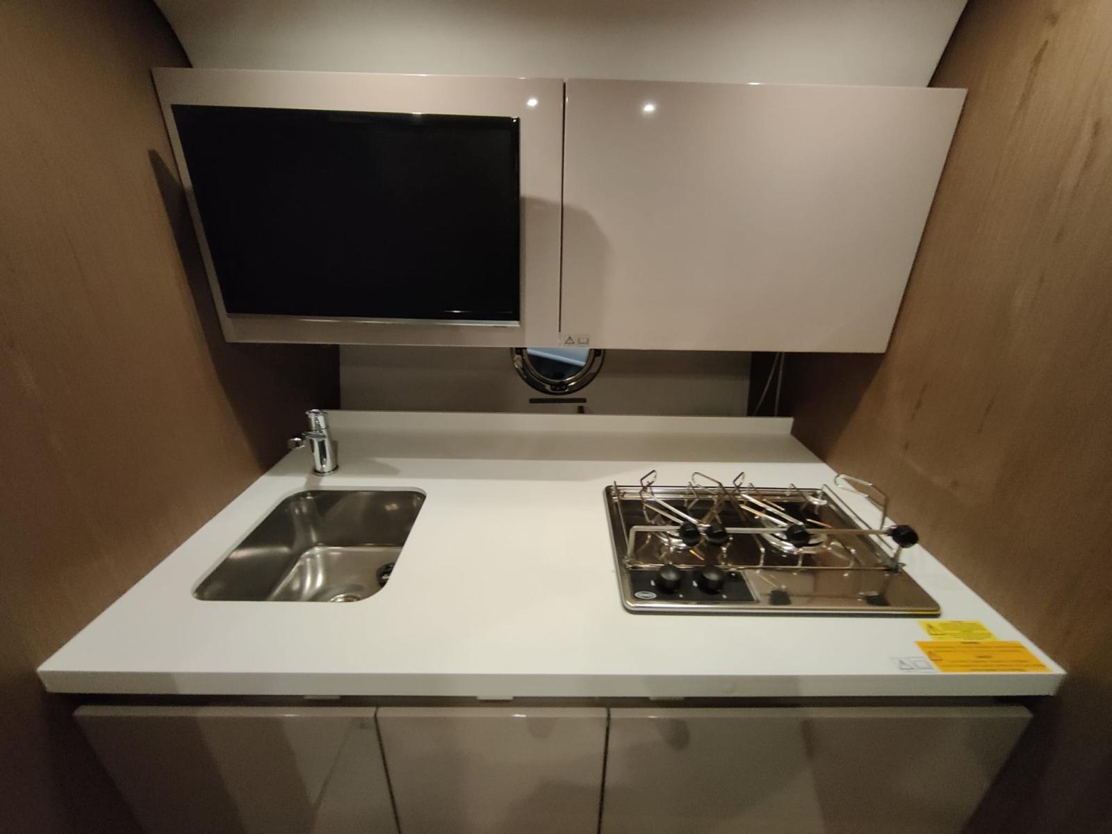 Teak nella plancetta, teak nel pozzetto, tavolo nel pozzetto abbattibile, cucina nella piattaforma, joystick, manette elettroniche, flap elettrici, gps, ecoscandaglio, tromba, vhf, luci nel pozzetto, salpa ancore elettrico, ancora e catena, aria condizionata, tv,