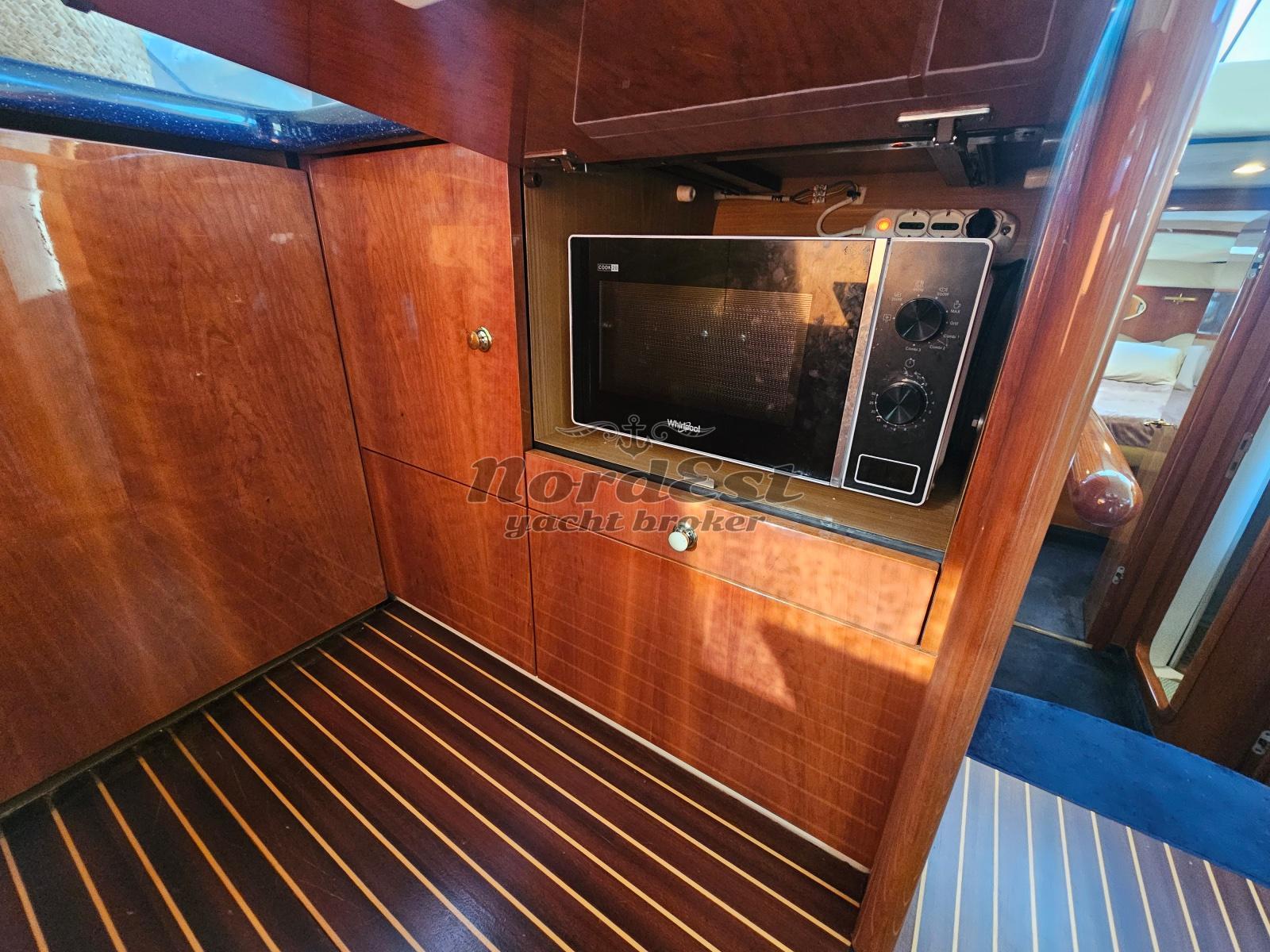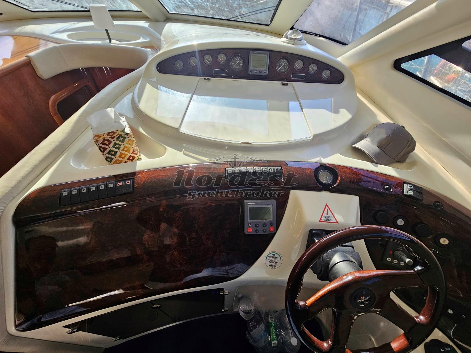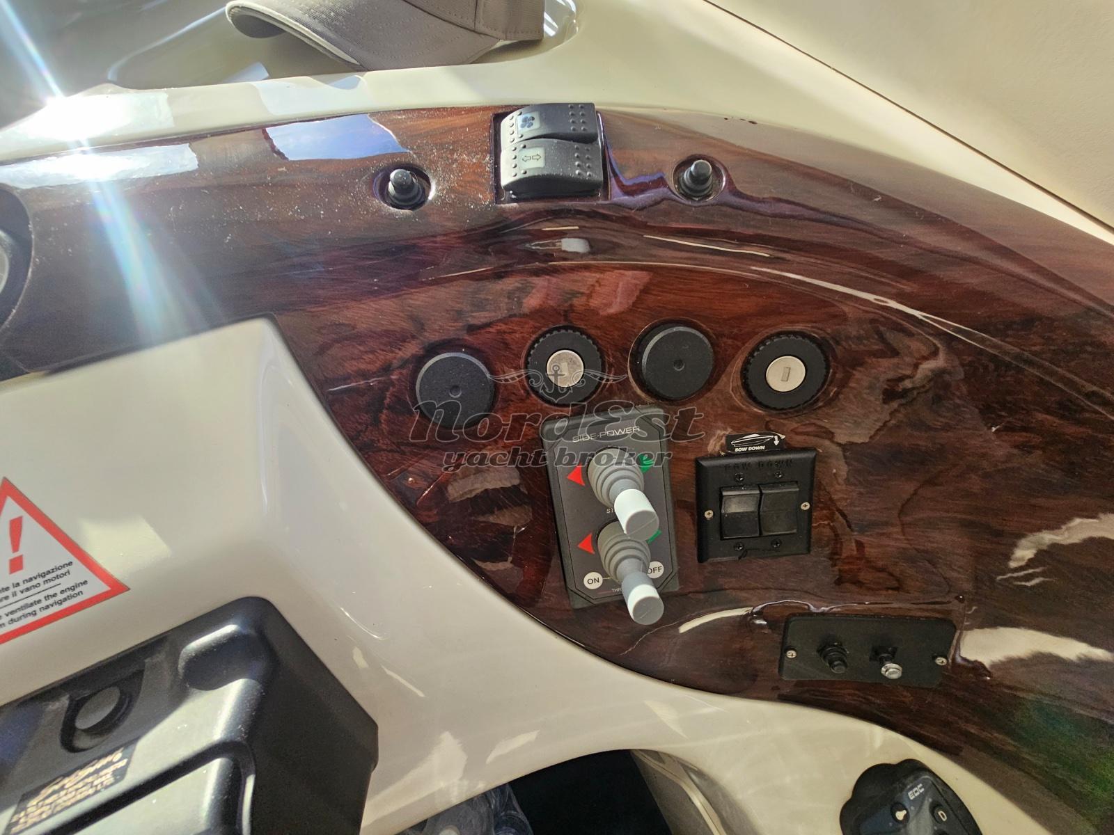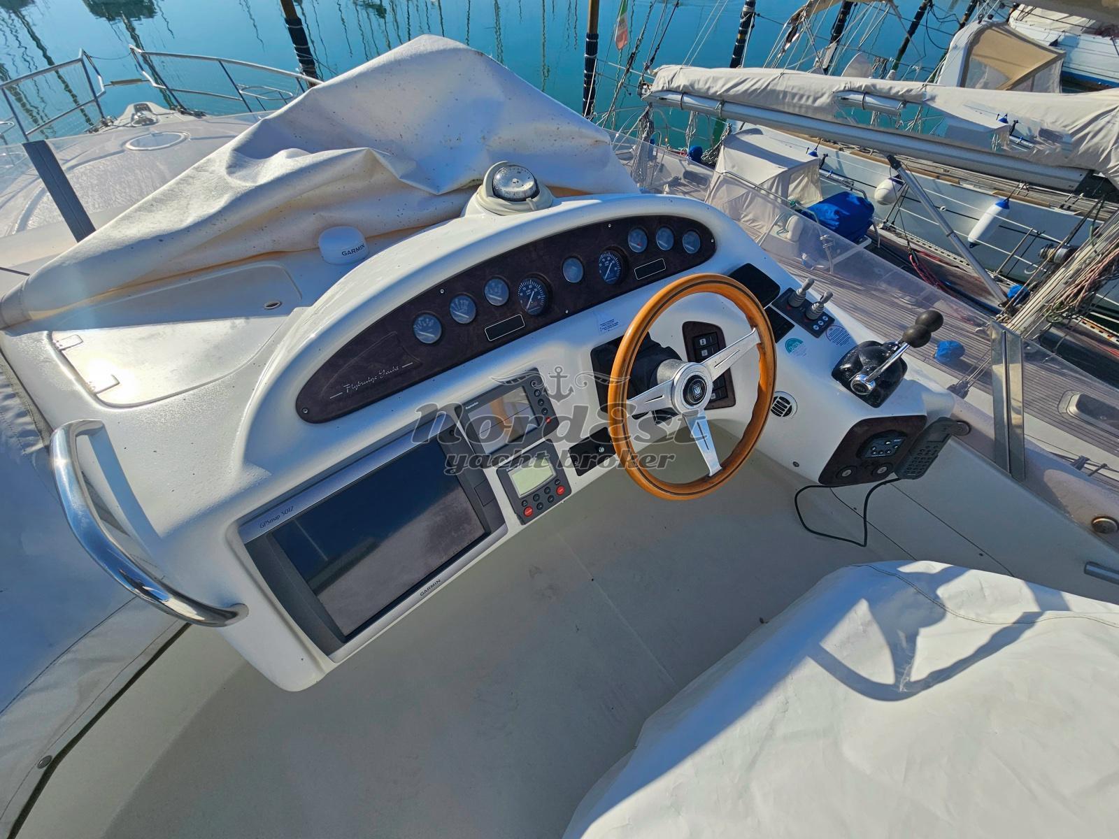 Contacatena - Faro orientabile - Angolo di barra - Autopilota - Ecoscandaglio: Garmin - GPS/Plotter - VHF - Manette elettroniche - Stazione meteo - Strumenti vento - Impianto TV - TV - Impianto stereo