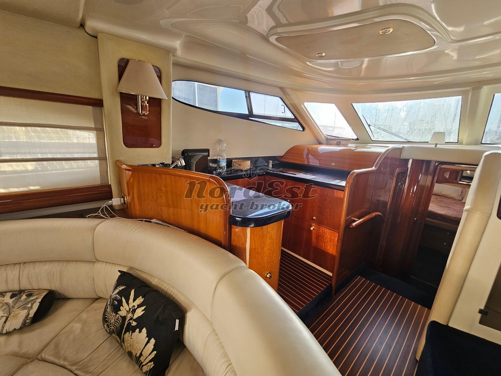 Bellissimo e ben mantenuto Atlantique 48 Fly. Poche ore di moto, circa 1000. Finitura legno interno in ciliegio lucido in perfetto stato senza alcun segno di sbiancamento. Tappezzeria buona. Motori sempre seguiti e tagliandati. Doppia elica di manovra, icemaker, generatore 7kw ed impianto acque nere. Nessun lavoro da eseguire.