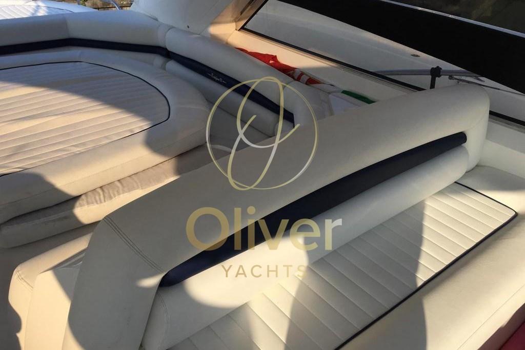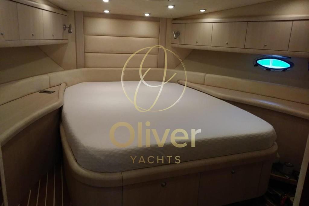 Il layout prevede 3 cabine e 2 bagni, una configurazione estremamente ricercata su un open di questa lunghezza. La cabina armatoriale è ampia, luminosa e dotata di bagno privato, offrendo comfort e privacy paragonabili a imbarcazioni di categoria superiore. Le due cabine ospiti sono ben dimensionate e servite dal secondo bagno, rendendo la barca perfetta anche per crociere con famiglia o amici.