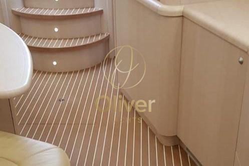 Gli interni del Sunseeker Portofino 53 riflettono pienamente la filosofia del brand: eleganza sobria, materiali marini di qualità e spazi ben sfruttati. La struttura è realizzata in compensato marino, sinonimo di robustezza e durata nel tempo, ideale per un utilizzo armatoriale continuativo.